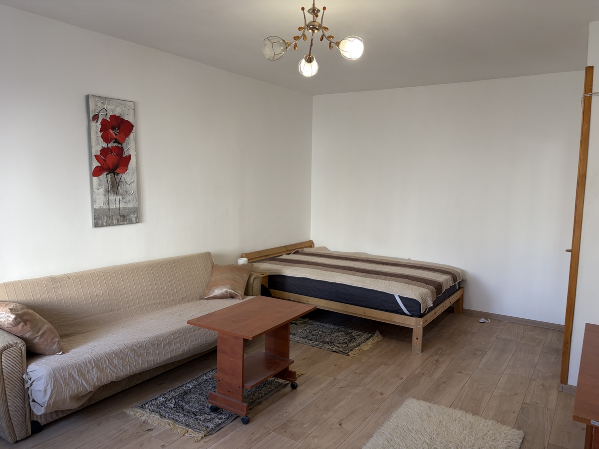 inchiriere garsoniera, confort I, decomandata, situata la etajul 5 al unui imobil P+8, an constructie 1986, 2 lifturi, vedere catre spatele blocului.