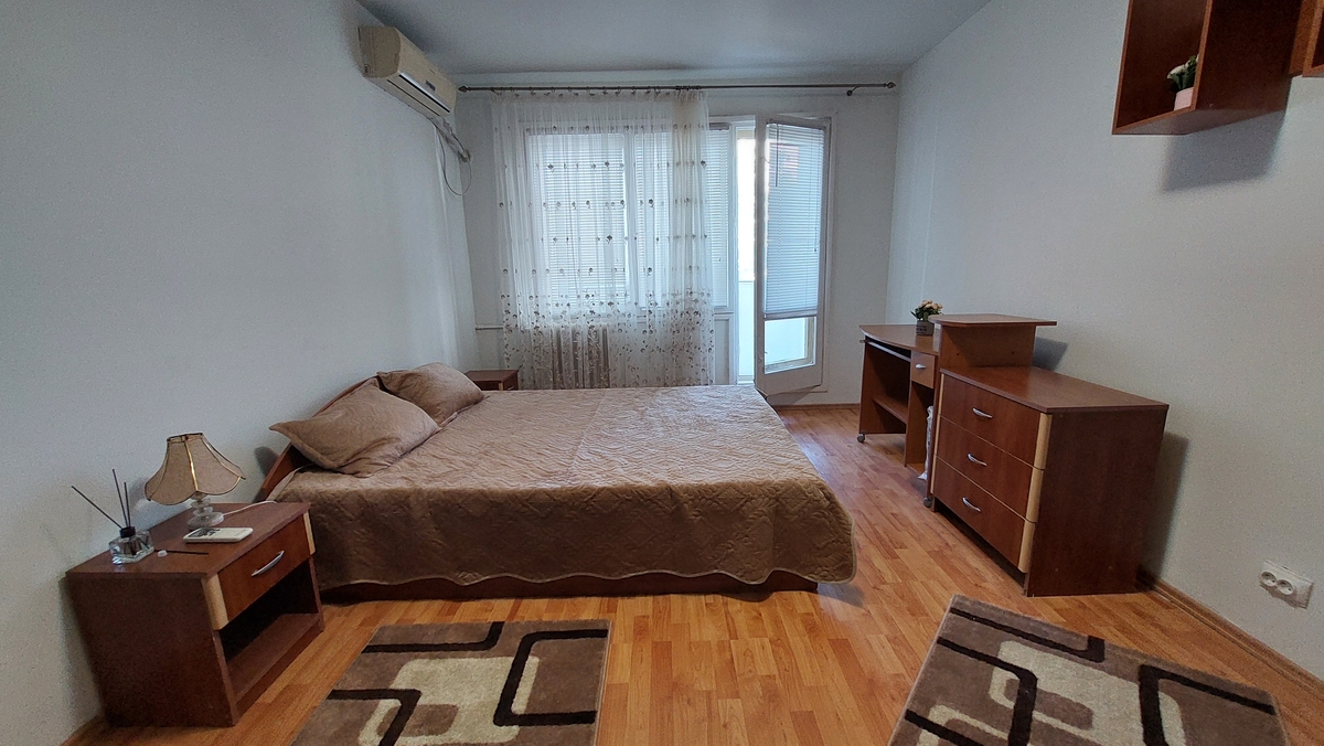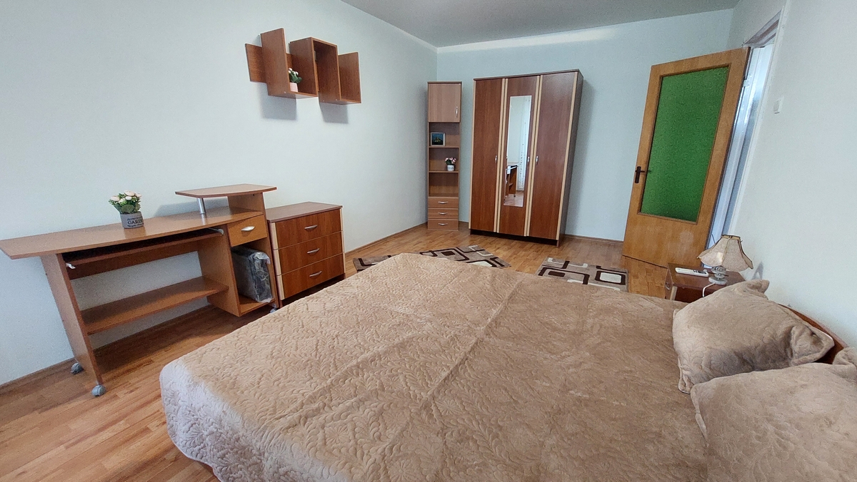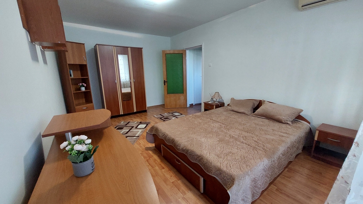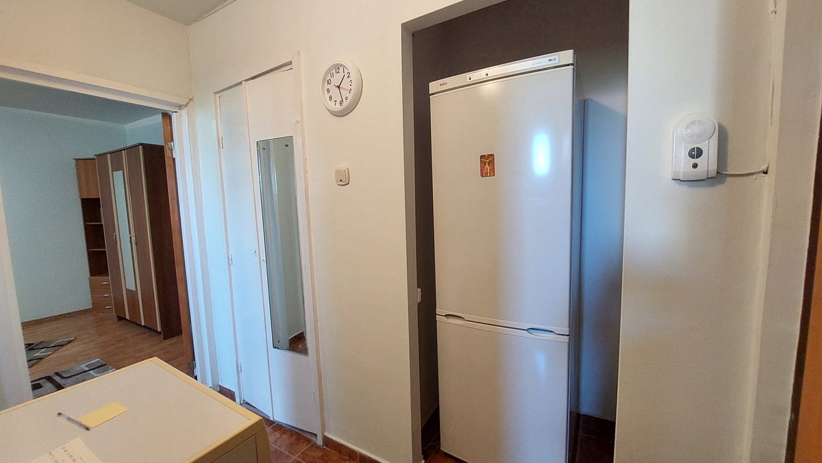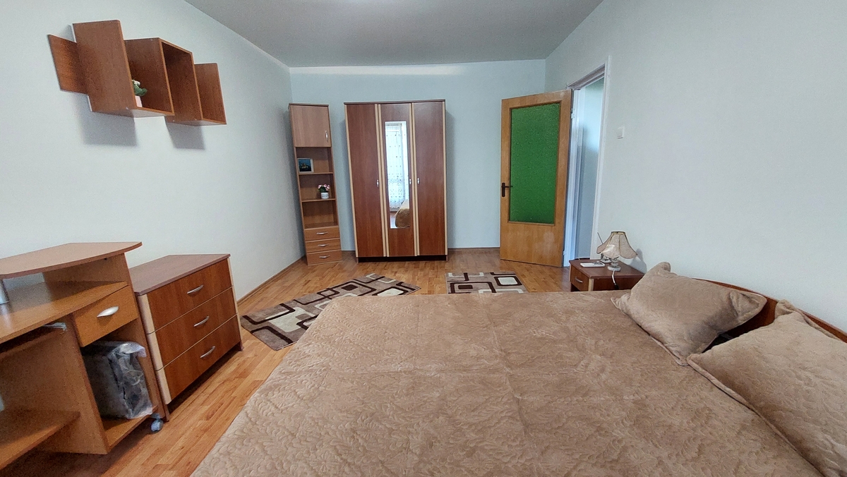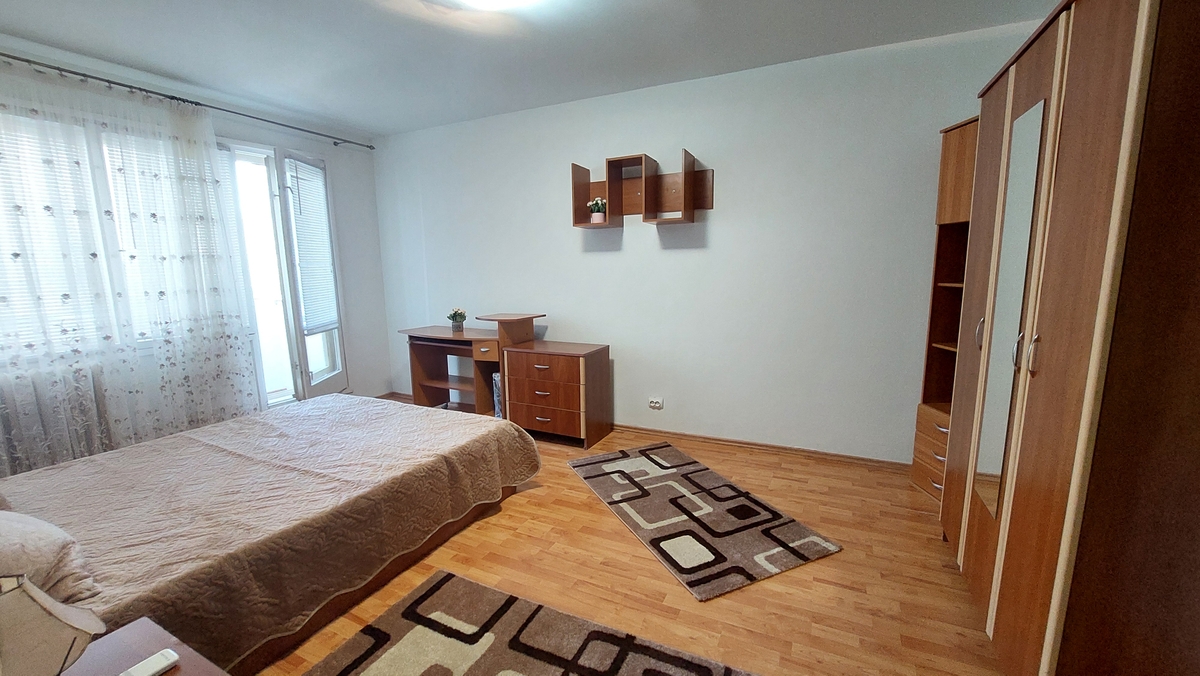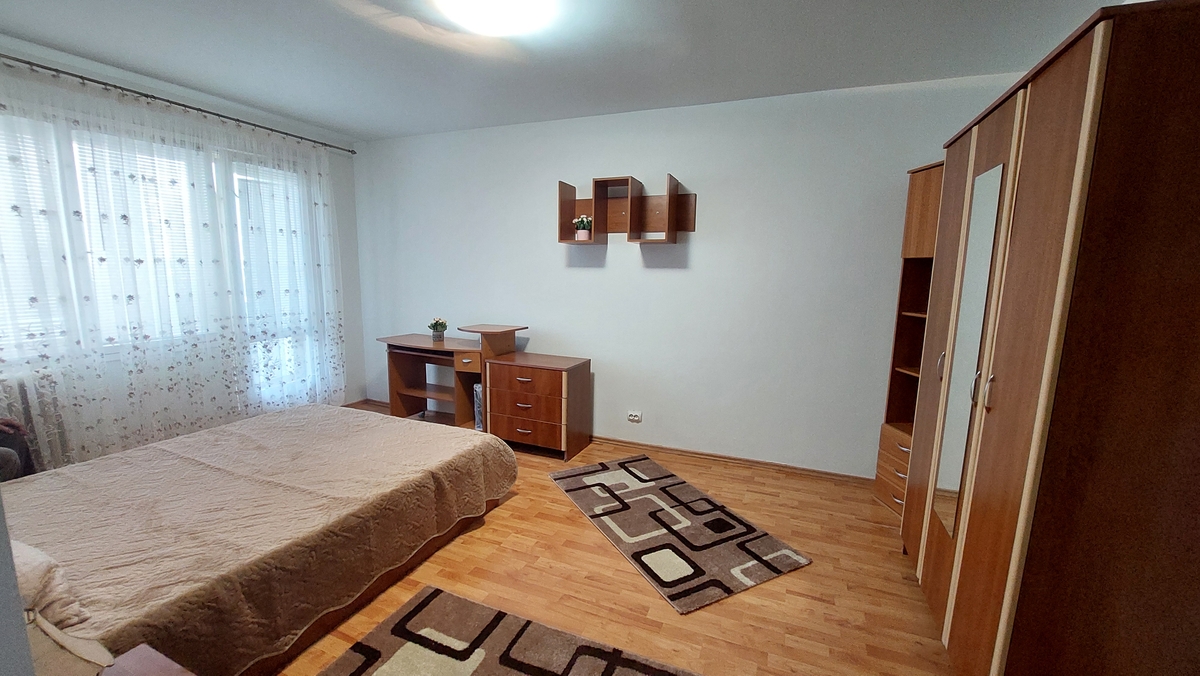 Este mobilata si utilata, pat de mijloc, dulap pentru haine, aragaz, frigider, masina de spalat rufe, etc.