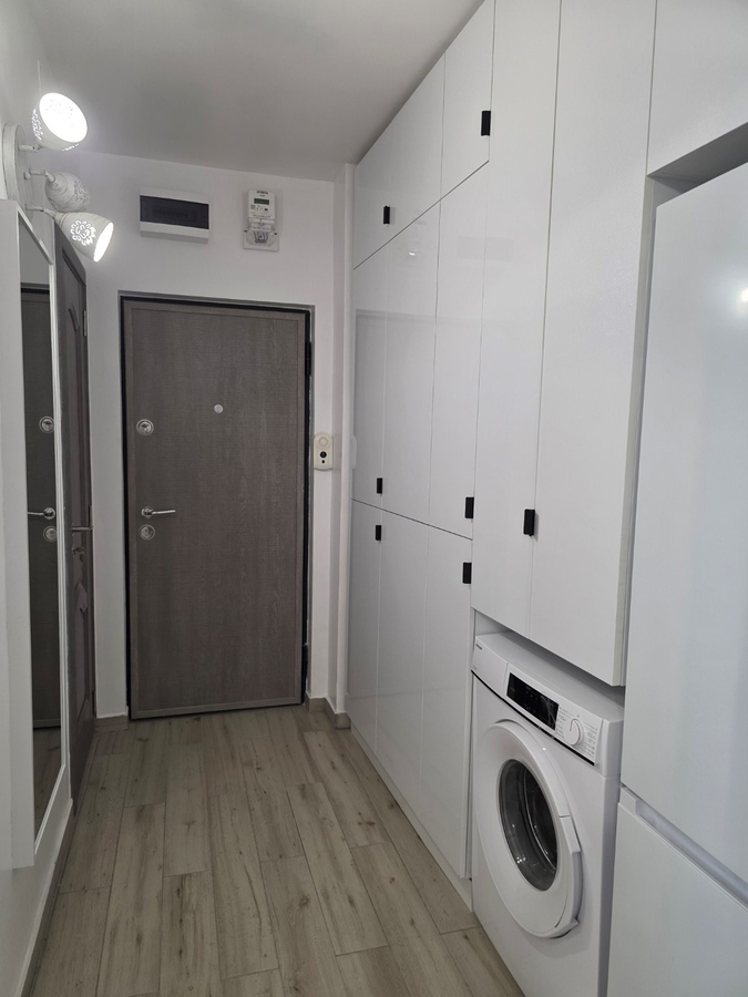 Garsoniera este decomandata, complet renovata, mobilata si utilata lux, are gresie, faianta, parchet, termopane, usa metalica, frigider, masina spalat, cuptor, aragaz si are geam la baie