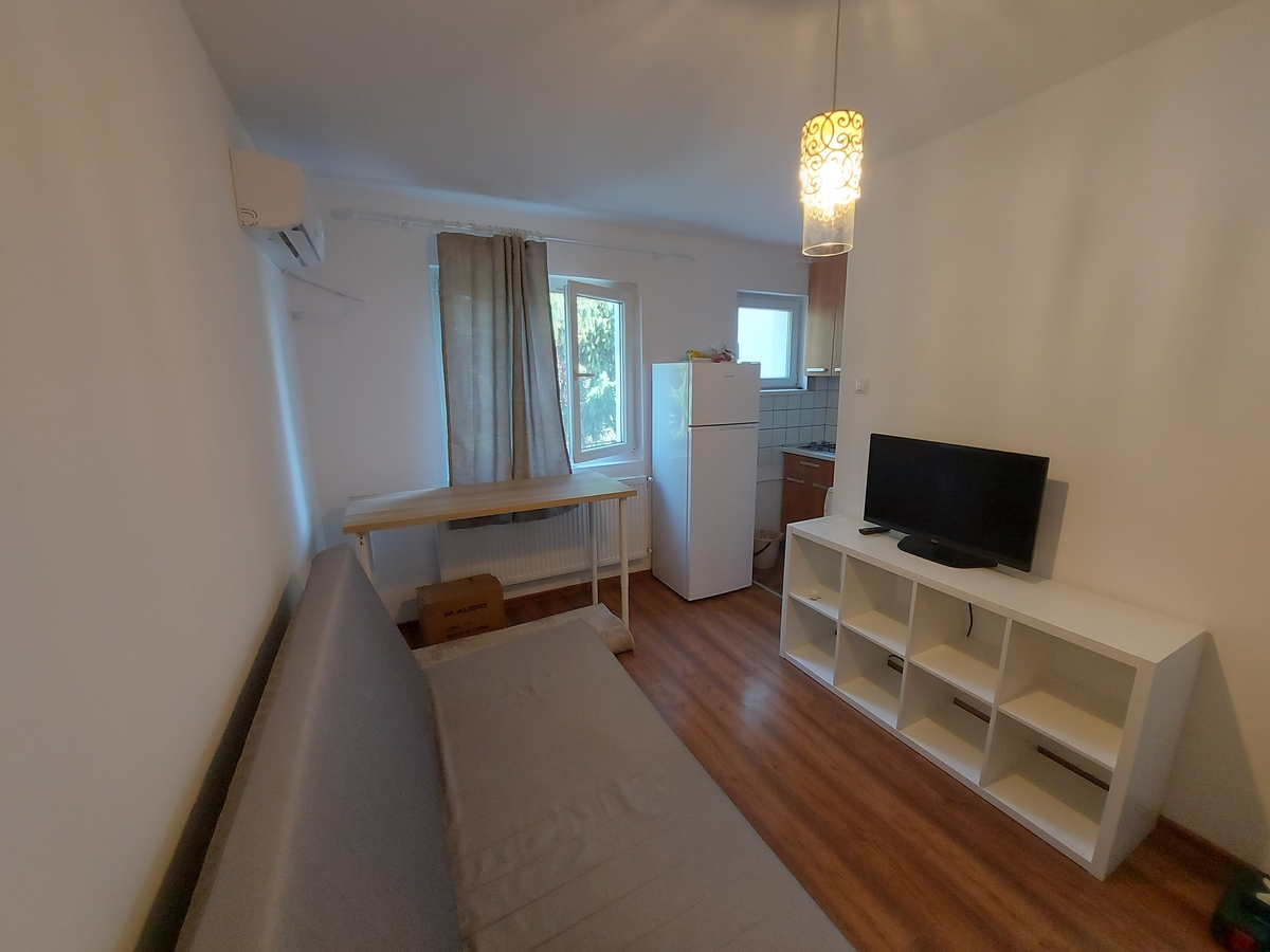 garsoniera mobilata si utilata, 18 mp, etajul 4/4 in bloc reabilitat termic, strada Moise Nicoara, libera,
