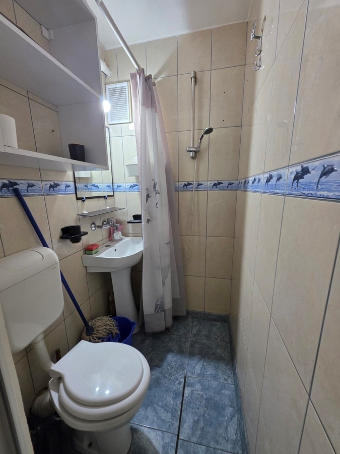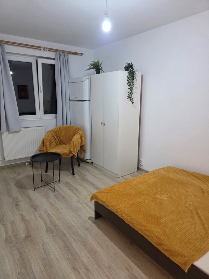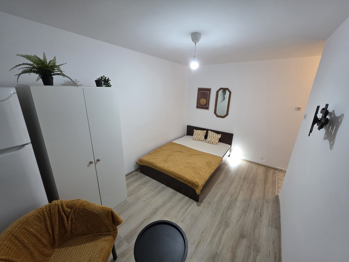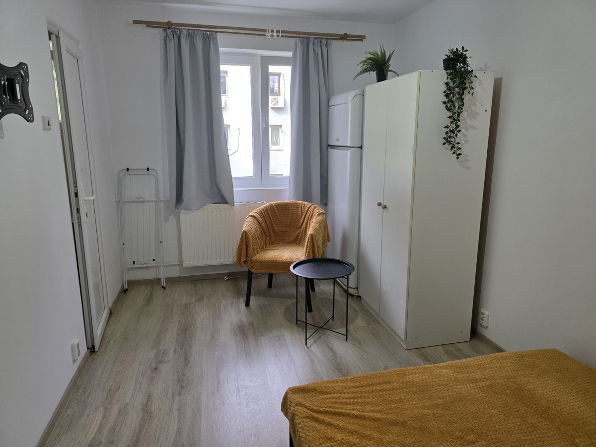 Garsoniera este renovata recent, complet mobilata si utilata si are gresie, faianta, parchet, termompane, usa metalica, masina spalat.
