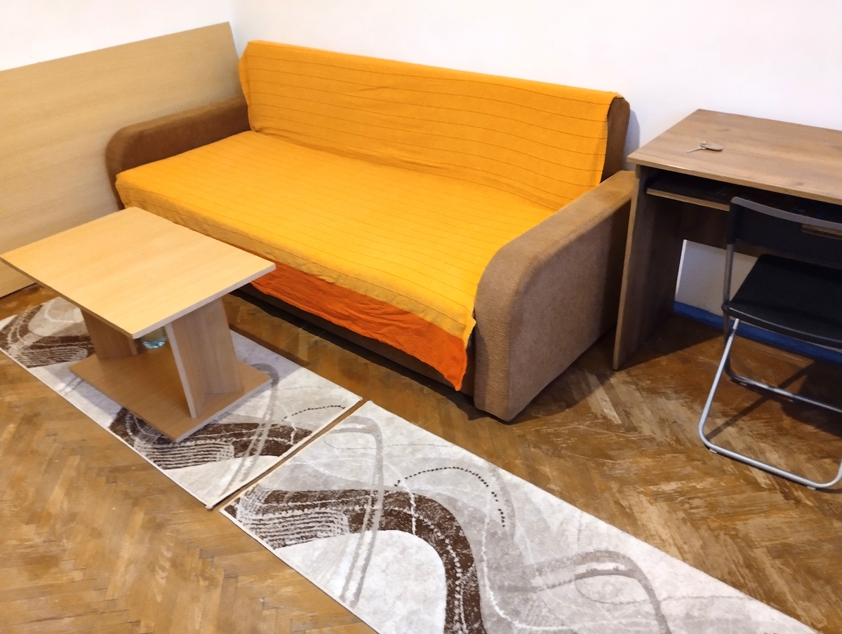 Garsoniera este decomandata dar nu are bucatarie dedicata. Pe hol exista o plita electrica si un frigider mare.