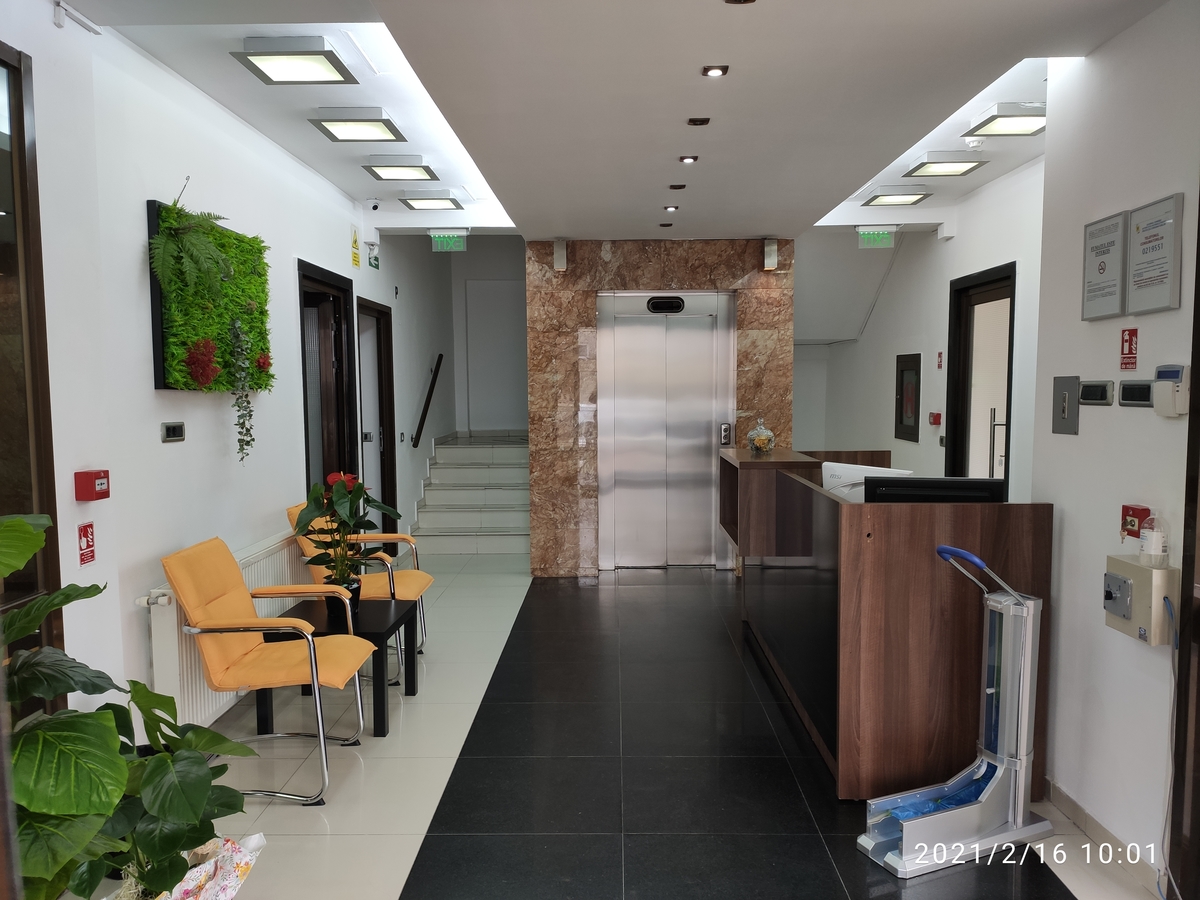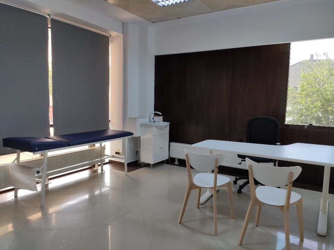 Cabinetele se afla intr-un spatiu nou si modern ce au 6 etaje si sunt prevazute cu rampa si lift, cu capacitate de 8 persoane, receptia, sala de asteptare, grupul sanitar pentru pacienti si pentru personal pe fiecare etaj, sistemul antiincendiu, supraveghere video, centrala proprie, aer conditionat si loc de parcare disponibil in fata clinicii.