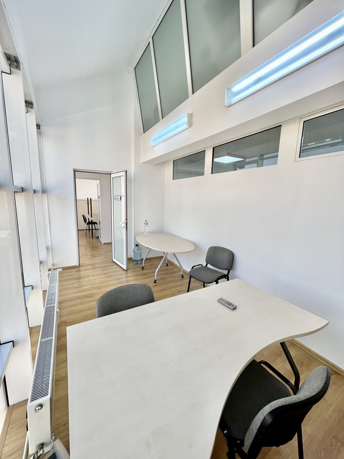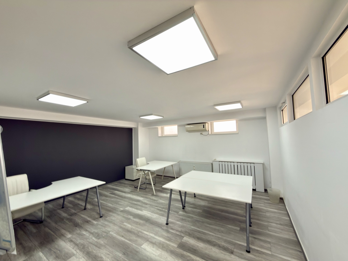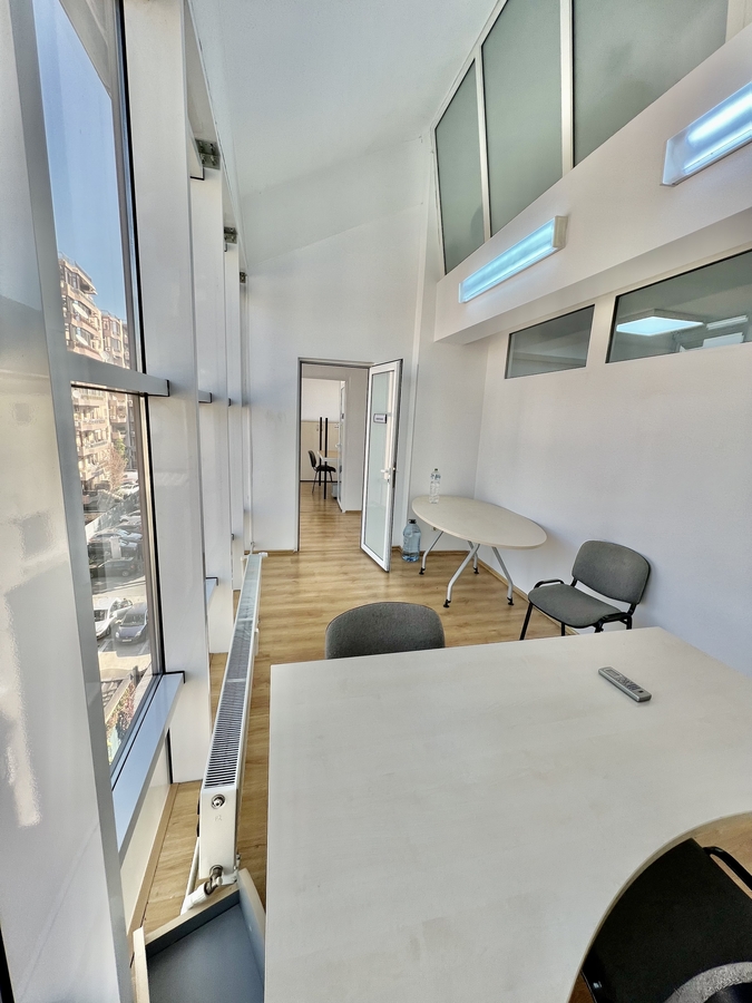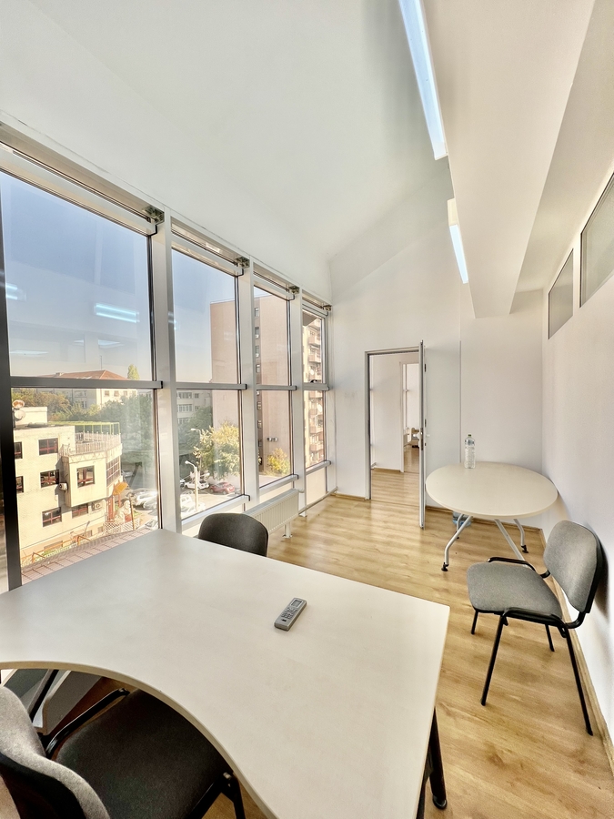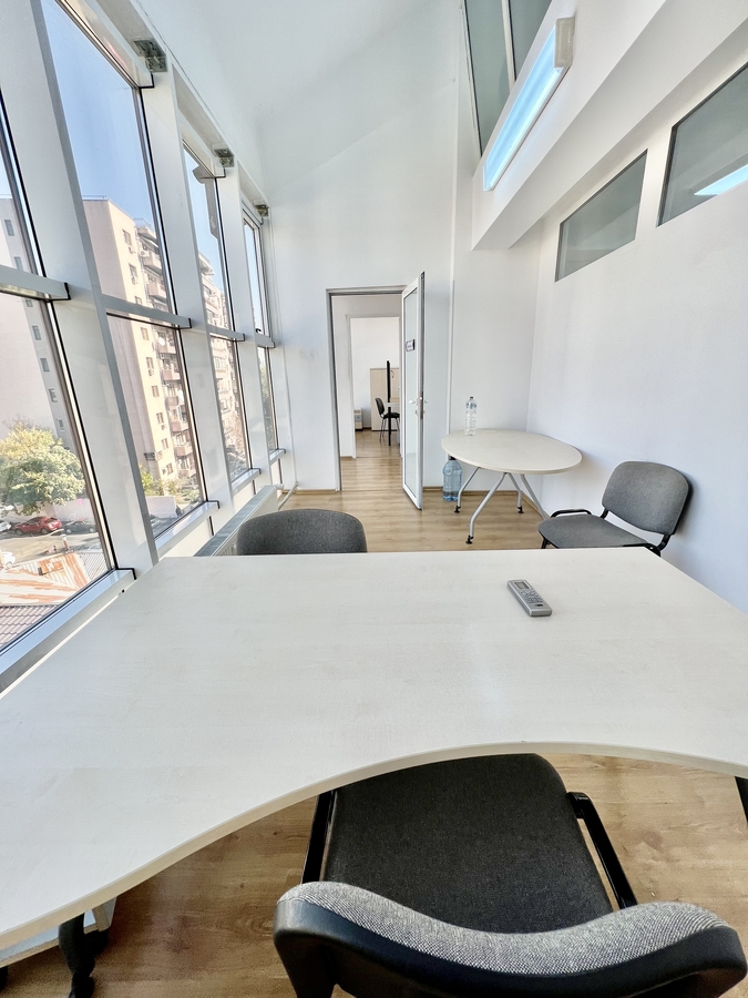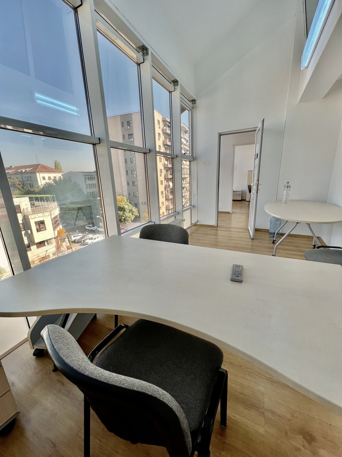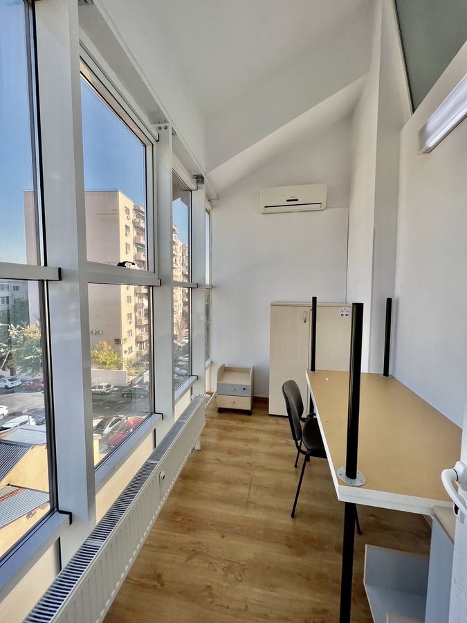 Spatiul este complet mobilat si dotat cu aer conditionat, parchet, ferestre termopan si contorizare individuala pentru utilitati (caldura, energie electrica, apa).