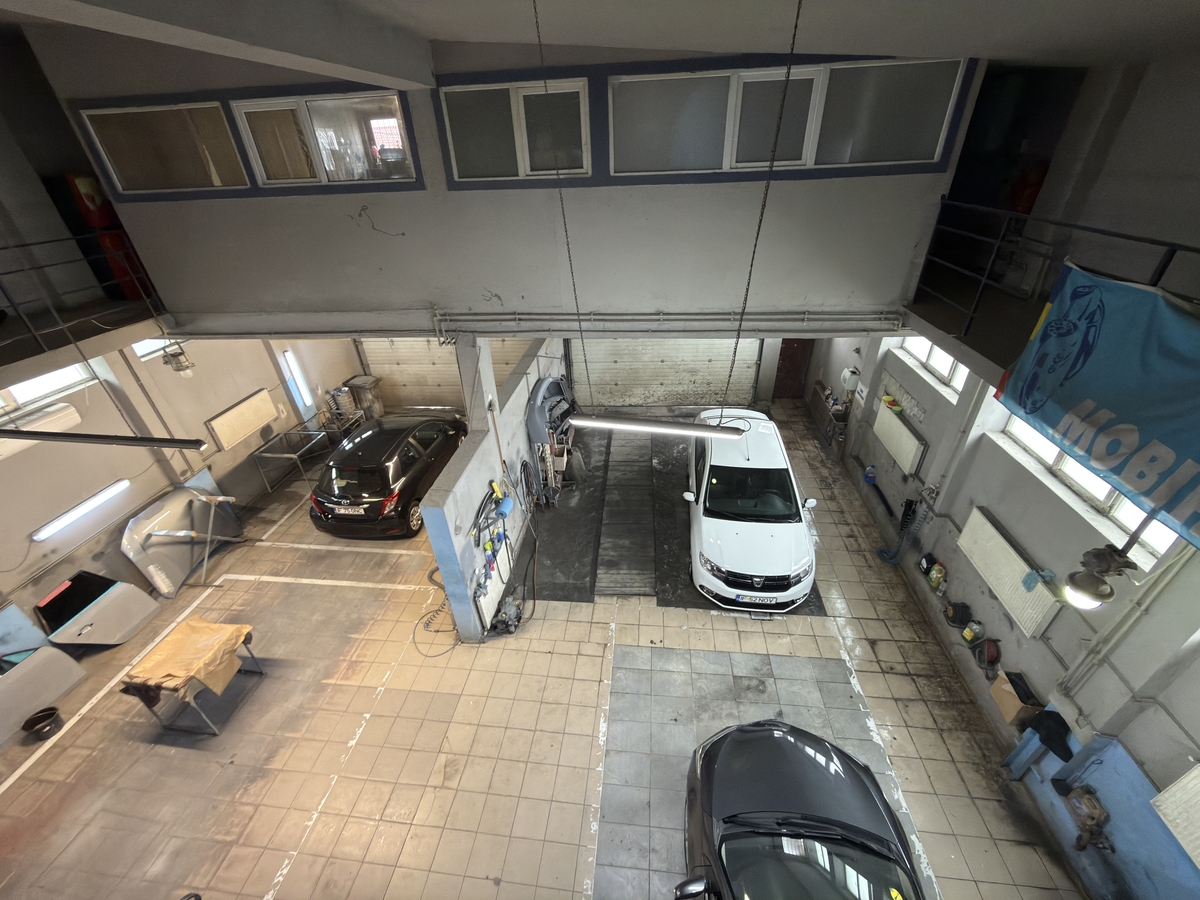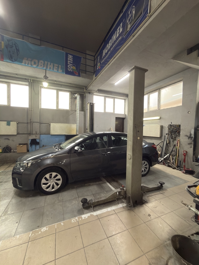 Dotata cu cabina de vopsit, elevator, 2 rampe si utilaje specifice pentru service auto, tinichigerie si vopsitorie.