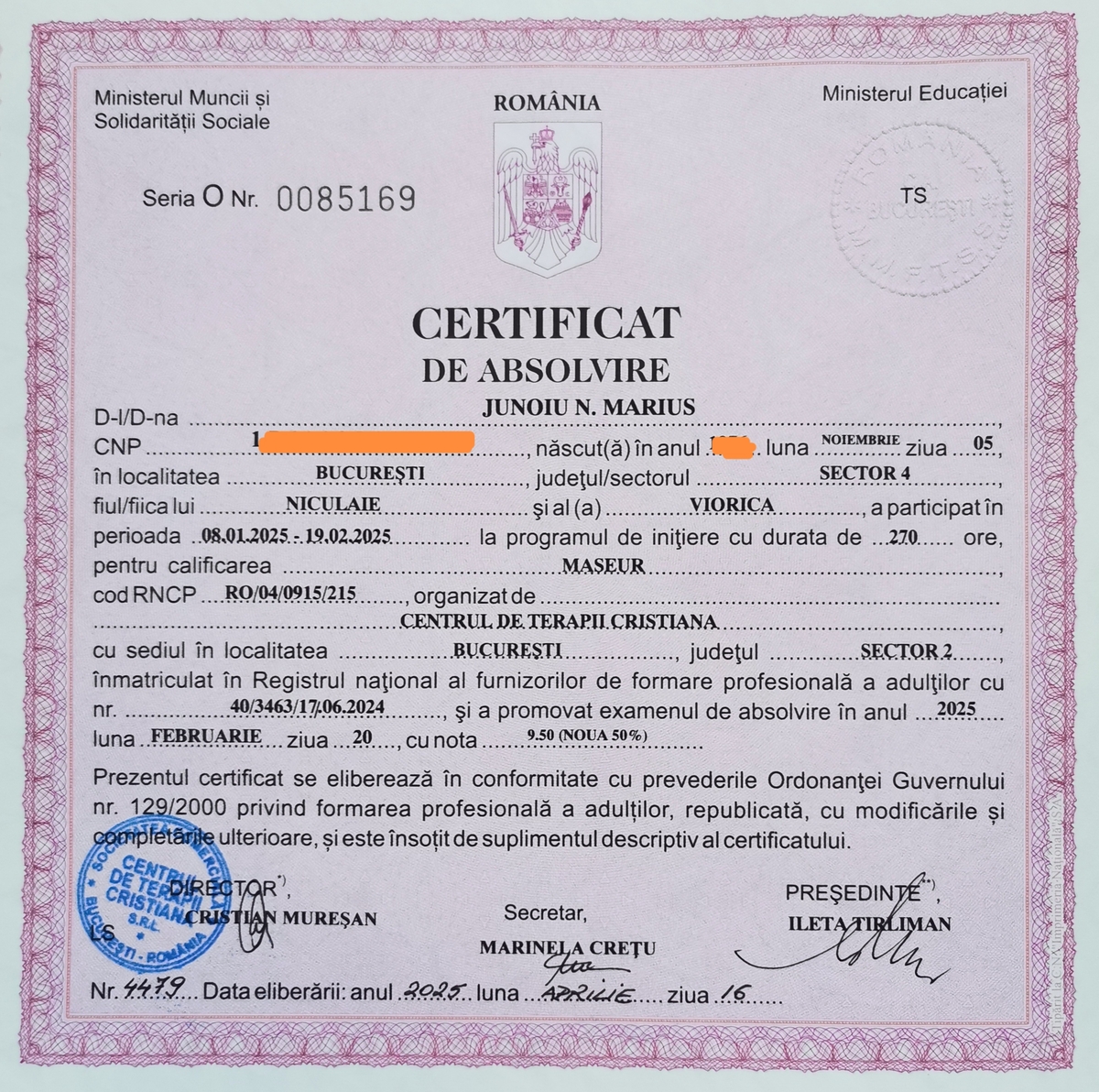 About me: Marius Junoiu, I am a graduate of the Cristiana Therapy Center. Experience, seriousness and passion for well-being.