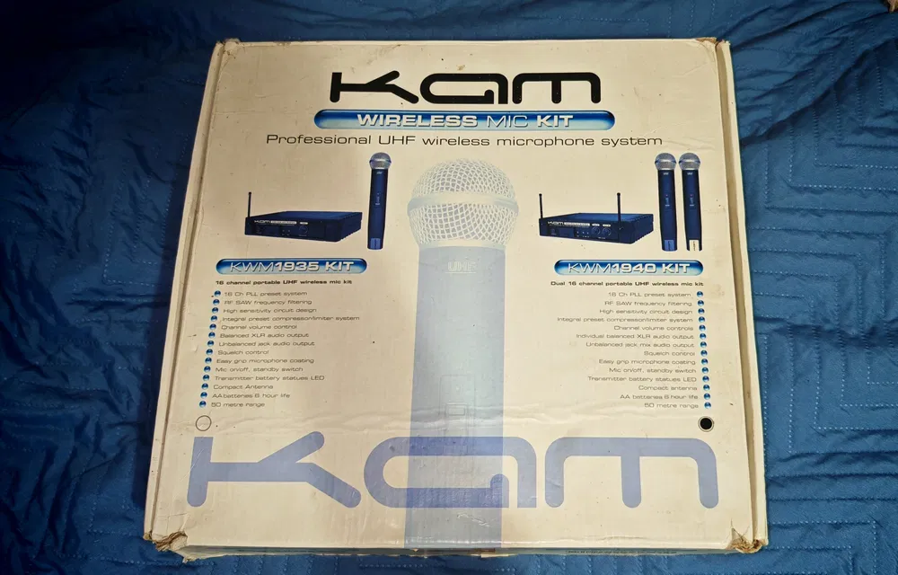 Kam KWM1940 este un kit portabil de microfon wireless UHF dual. Dispunand de un sistem presetat PLL pe 16 canale, KWM1940 produce un sunet clar si de calitate, echilibrat si rafinat de sistemul integrat de compresor/ limitator presetat.