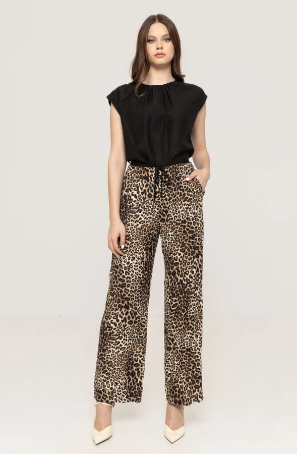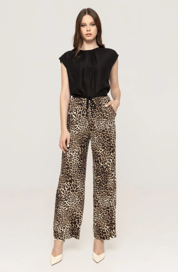 Pantaloni largi cu imprimeu leopard Sara