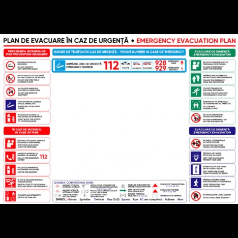 Vand Placuta cu plan de evacuare in caz de incendiu la un pret foarte avantajos! Placuta cu plan de evacuare in caz de incendiu Va putem oferi si alte dimensiuni, materiale sau modele separat la cerere. Noua modalitate de imprimare UV pentru semne si indicatoare este cea mai recenta tehnologie UV. Aceasta tehnica este mult mai eficienta decat o tehnica obisnuita de imprimare digitala. Atat calitatea sa net superioara, cat si versatilitatea sa la imprimarea diferitelor produse sunt foarte mari si largi O imprimare UV consta intr-o tehnica de imprimare prin care cerneala este aplicata pe un material sau obiect care urmeaza sa fie imprimat, care este apoi uscata instantaneu de un emitator de raze ultraviolete. Multe tipuri de compusi sunt folosite pentru a acoperi intreaga suprafata imprimata, inclusiv carbonat de calciu si caolinit. Aceasta imprimare UV este o metoda de imprimare digitala cu o noua tehnica care usuca cerneala. Poate fi folosit pe o gama larga de materiale, astfel incat poate imprima pe plastic, metal, hartie, carton, placi ceramice, sticla, lemn si multe altele. Disponibil: - Autocolant PVC - forex industrial - Dibond din aluminiu. - www.prevenirea.ro Telefon : 0724 30 67 14