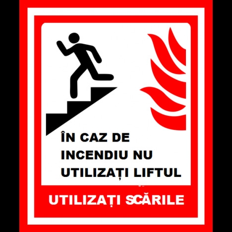 Placuta in caz de incendiu nu utilizati liftul utilizati scarile de iesire