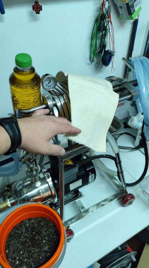 Presa ulei la rece pentru seminte de floarea soarelui+panza pentru filtrare.