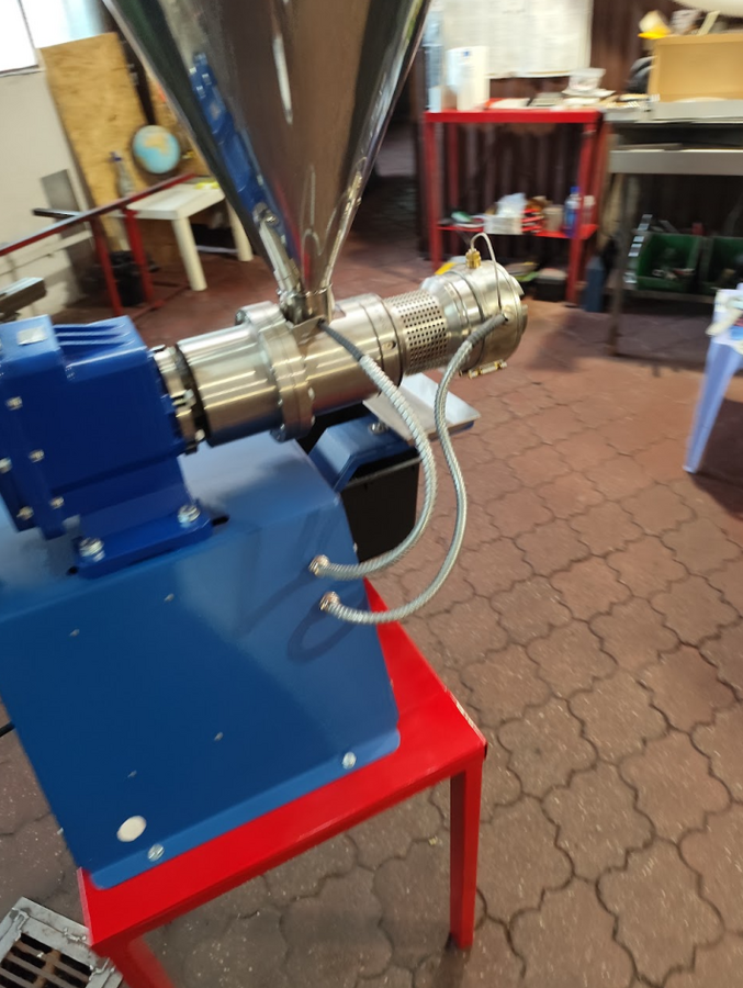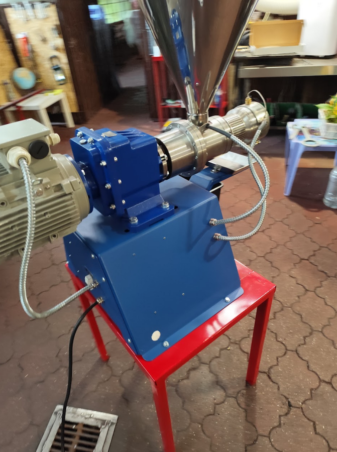 Presa ulei 220V, motor 2.2 kW, rezistenta electrica de 0.8 kW, capacitate 19-40 kg pe ora, productie de 6.8-10 litri de ulei de floarea-soarelui pe ora.