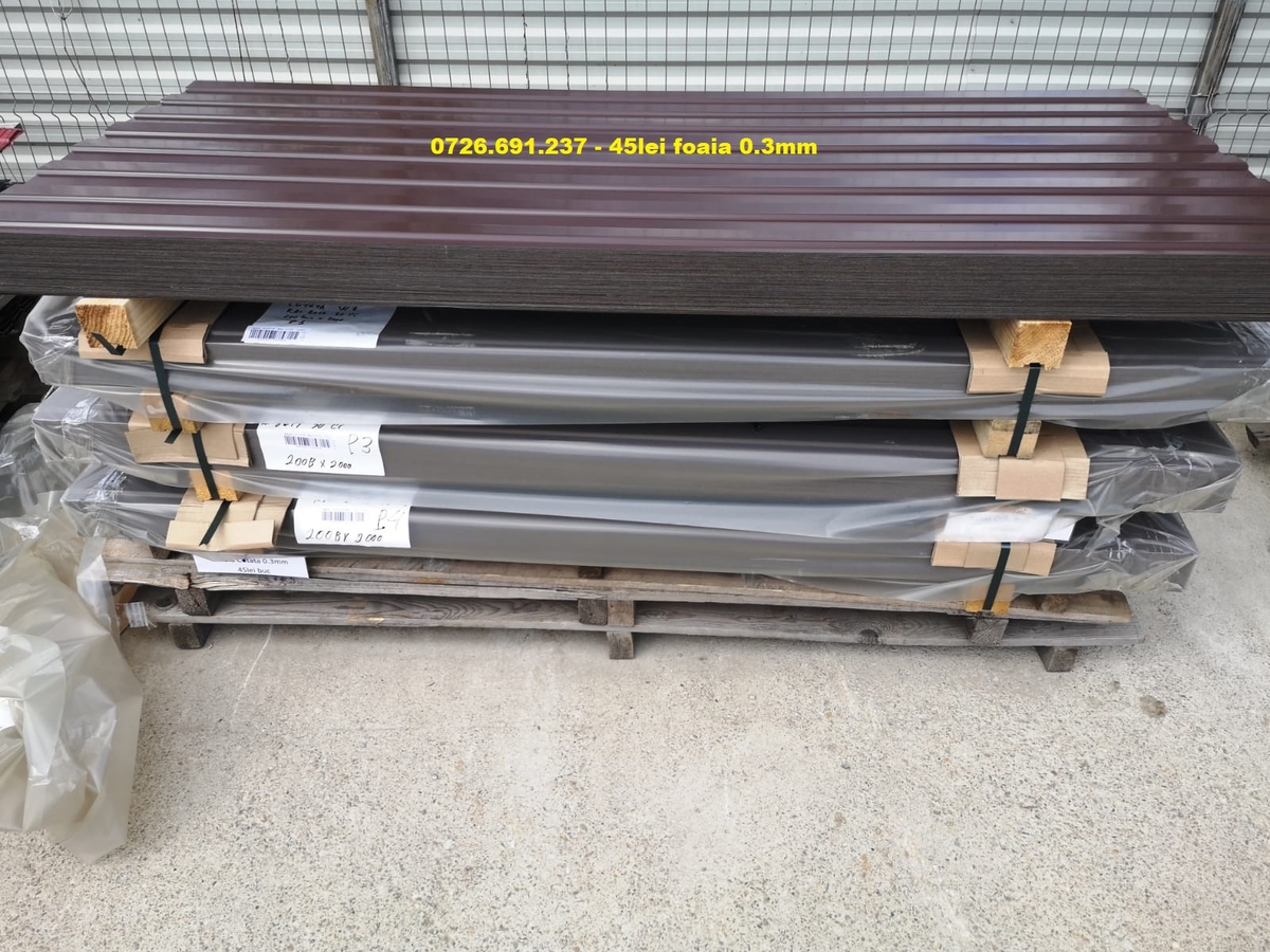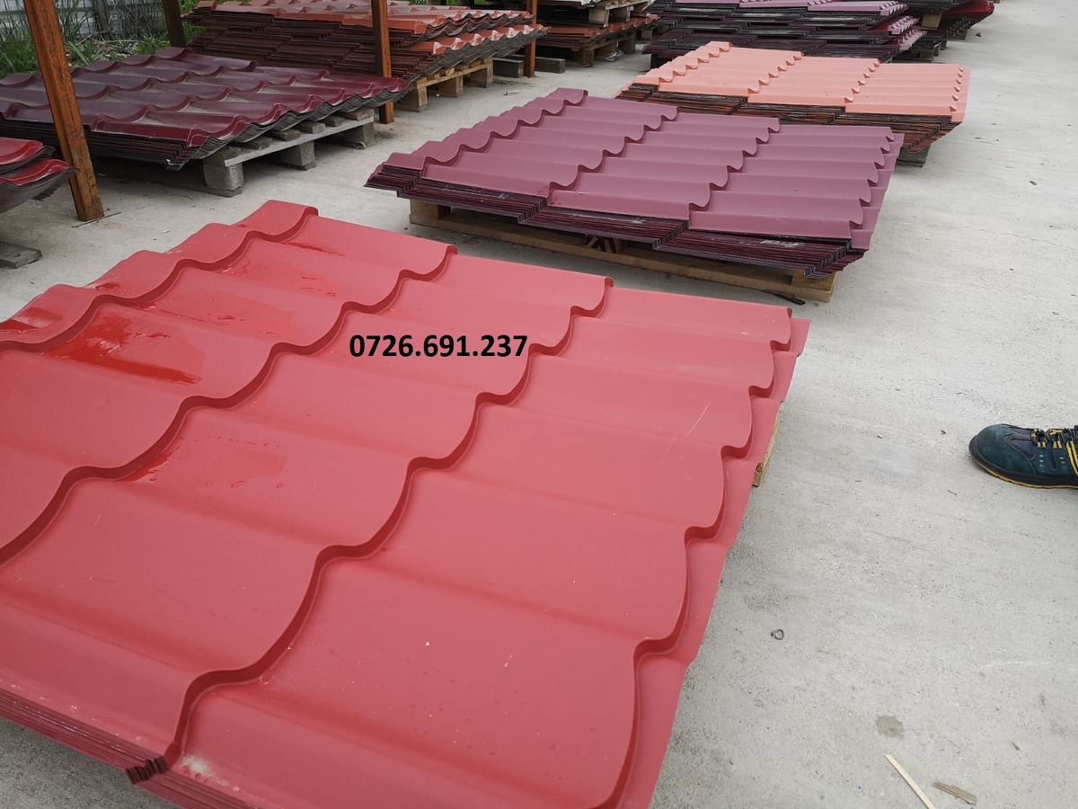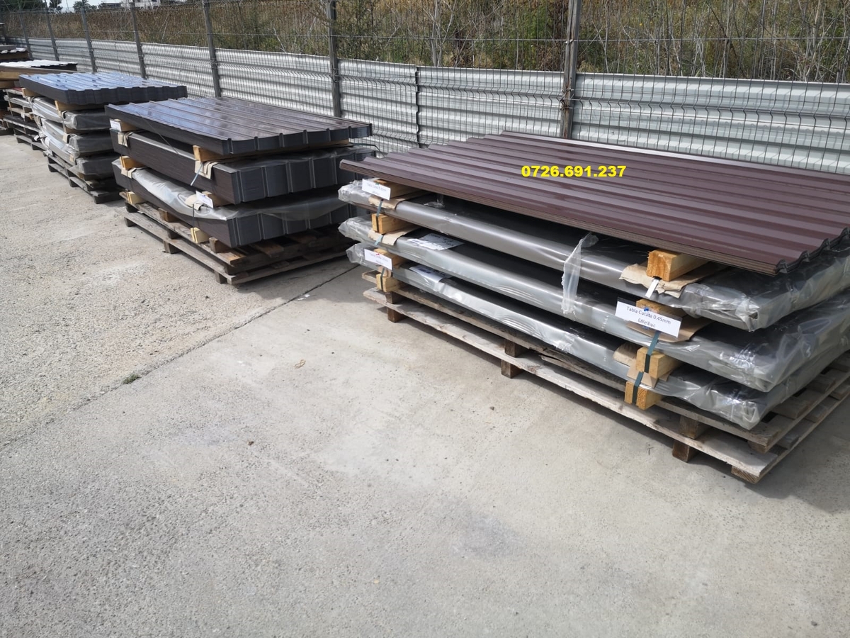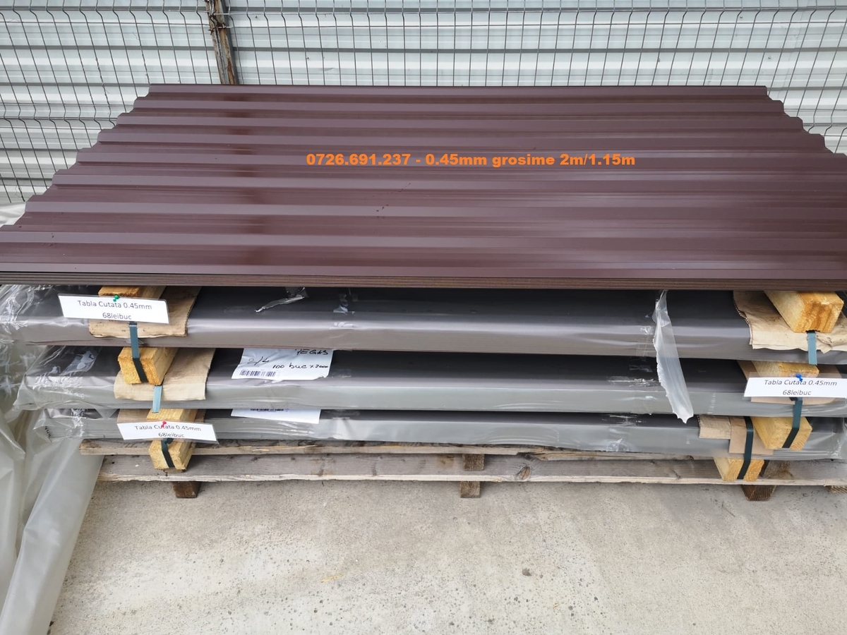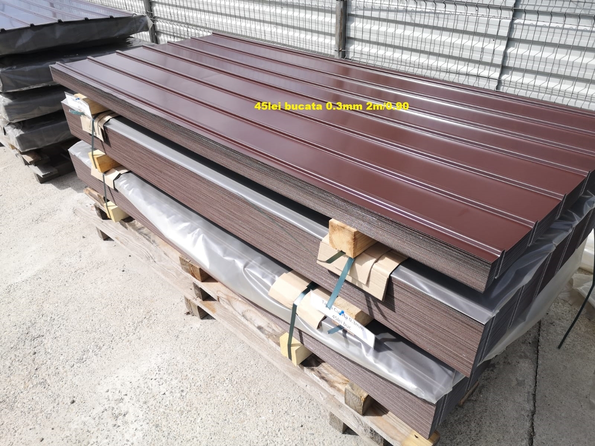 Depozit de tabla pentru garduri si acoperisuri, vindem ultimul stoc de tabla cutata la pret promotional. Tigla metalica 0.50mm grosime 31 lei/mp. Tabla cutata model T8 sau T10 culoari maro, visiniu, rosu sau caramiziu, grosime 0.5mm la pretul de 72lei pe bucata. O foaie are lungimea de 2m si latimea de 1.2m.