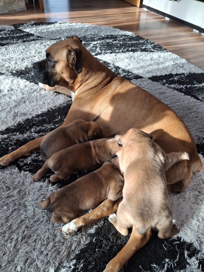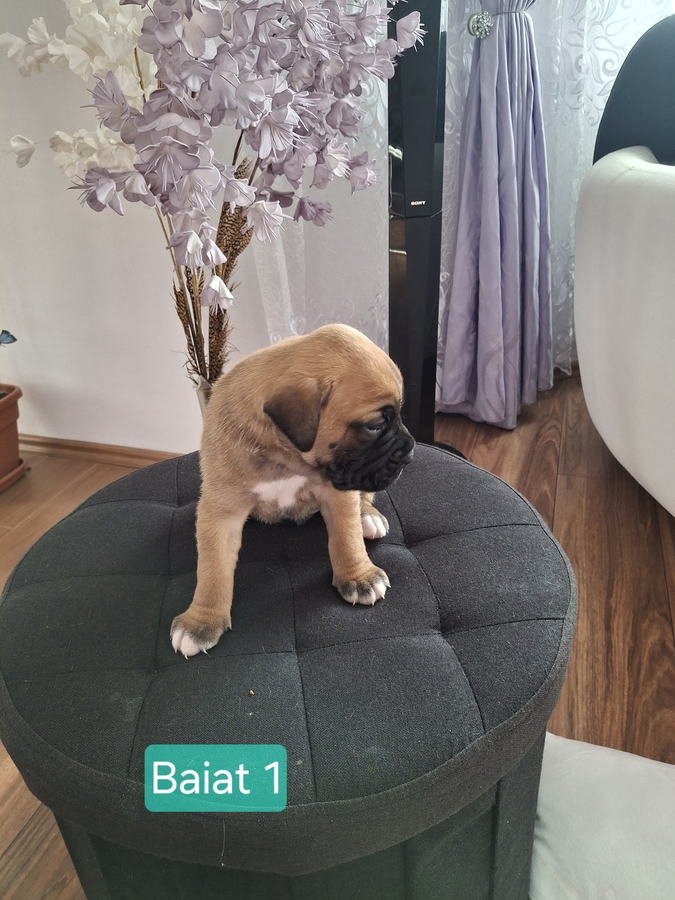 Pui boxeri 1 luna (3 baieti si 1 fata), vaccinati si deparazitati, cu carnet de sanatate cauta familii iubitoare.