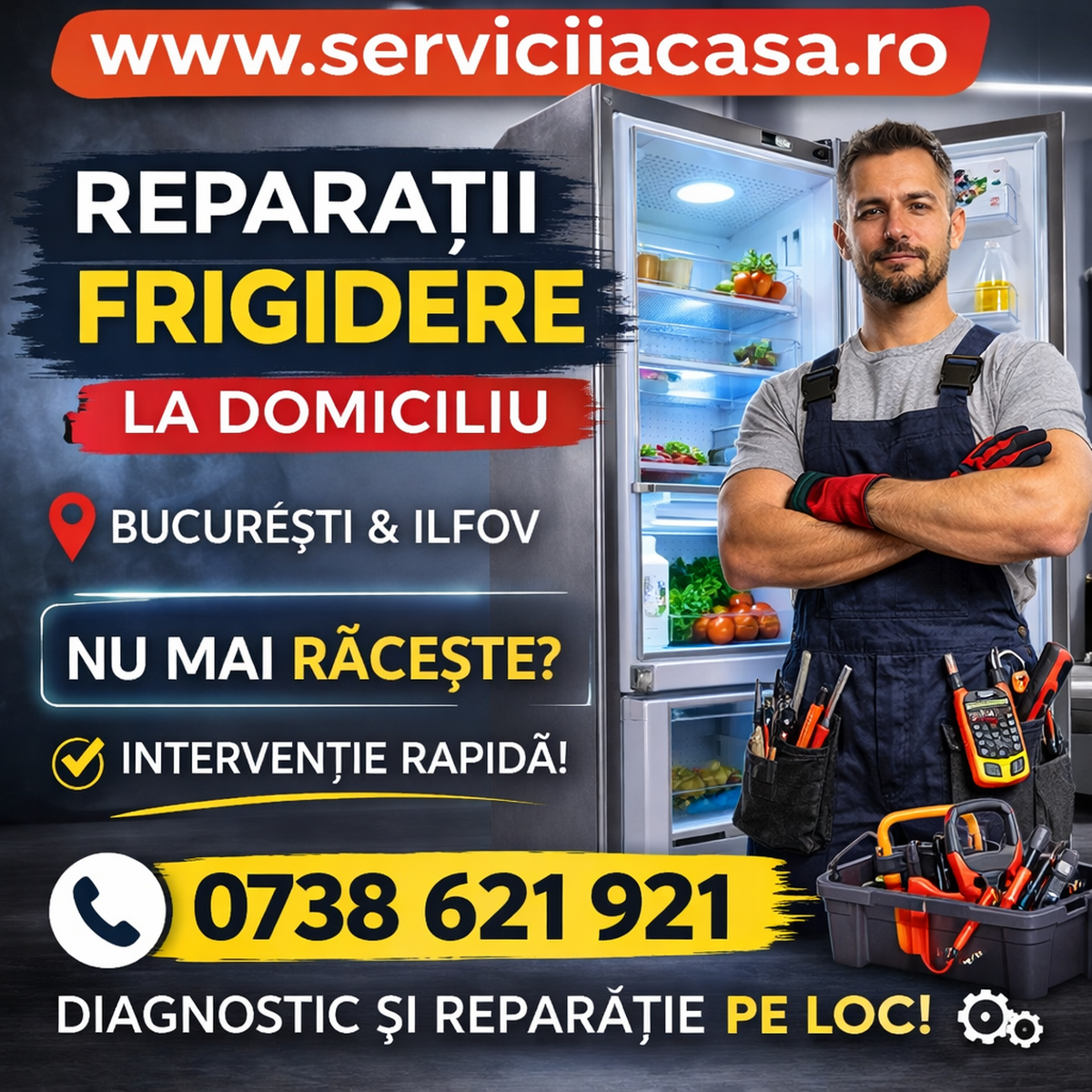 Oferim servicii profesionale de reparatii frigidere Bucuresti si reparatii frigidere Ilfov, cu interventie rapida la domiciliu pentru aparate care nu mai racesc sau nu mai functioneaza corect. Daca frigiderul nu mai raceste, congelatorul nu ingheata sau apar fluctuatii de temperatura, este important sa fie verificat de un tehnician specializat in service frigidere Bucuresti pentru a identifica exact cauza defectiunii.