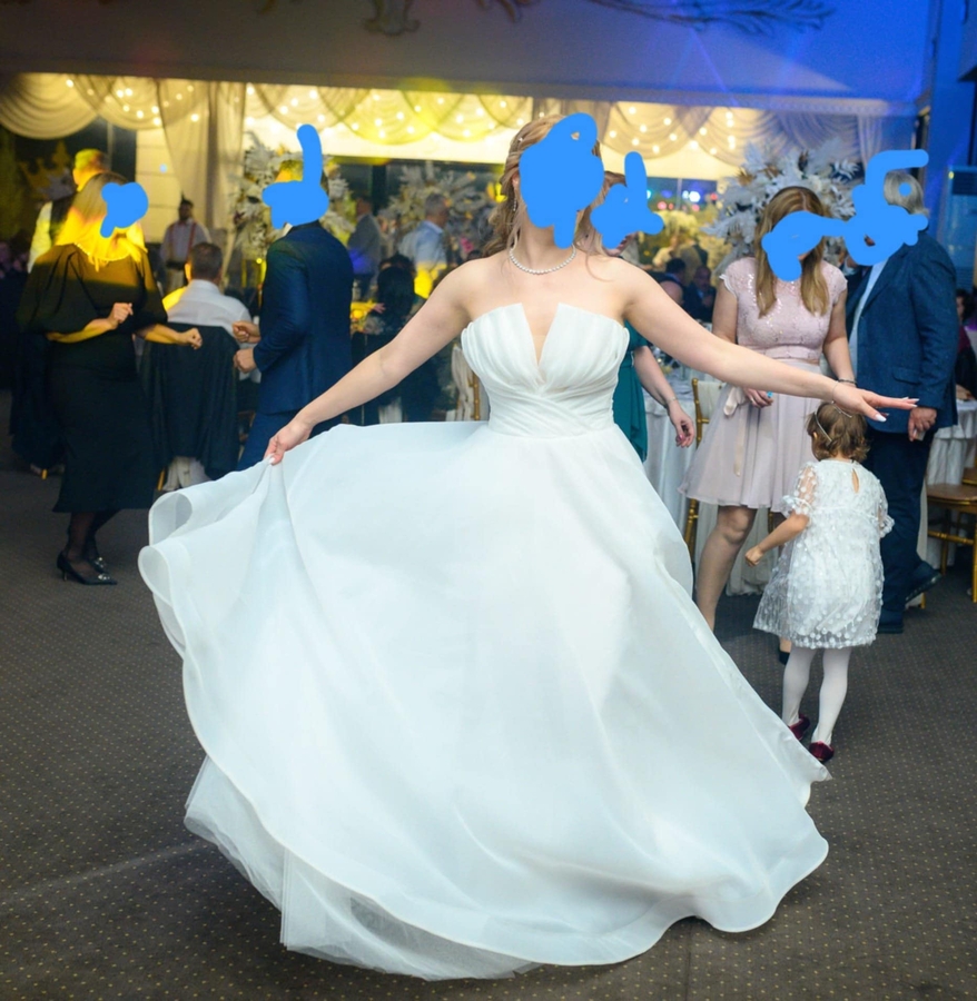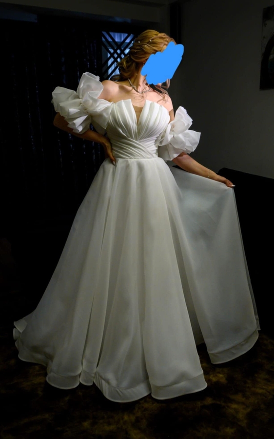 Vand rochie de mireasa din tafta, masura S/M, pe corset, cu maneci detasabile, potrivita pentru inaltimea 1,67 m, colectia Iris Bridal - 2024, se da si cu voal scurt,