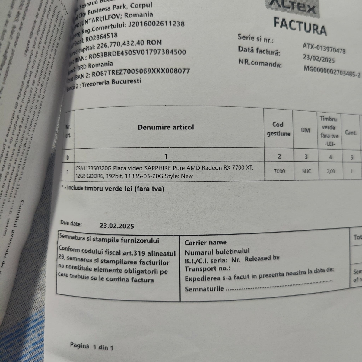 RX 7700 XT 12GB cu garantie 2ani +2 luni