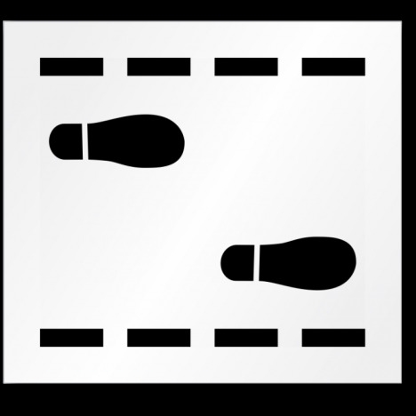 Vand Sablon cu pasi la un pret foarte avantajos! Sablon cu pasi Descriere produs Folositi din nou si din nou sablonul nostru de pavaj cu simbolul amprentei pentru a va marca traseul pietonal. Material ; forex industrial Dimensiune 500x500 mm - La cererea clientului producem toata gama se sabloane la orice dimensiune