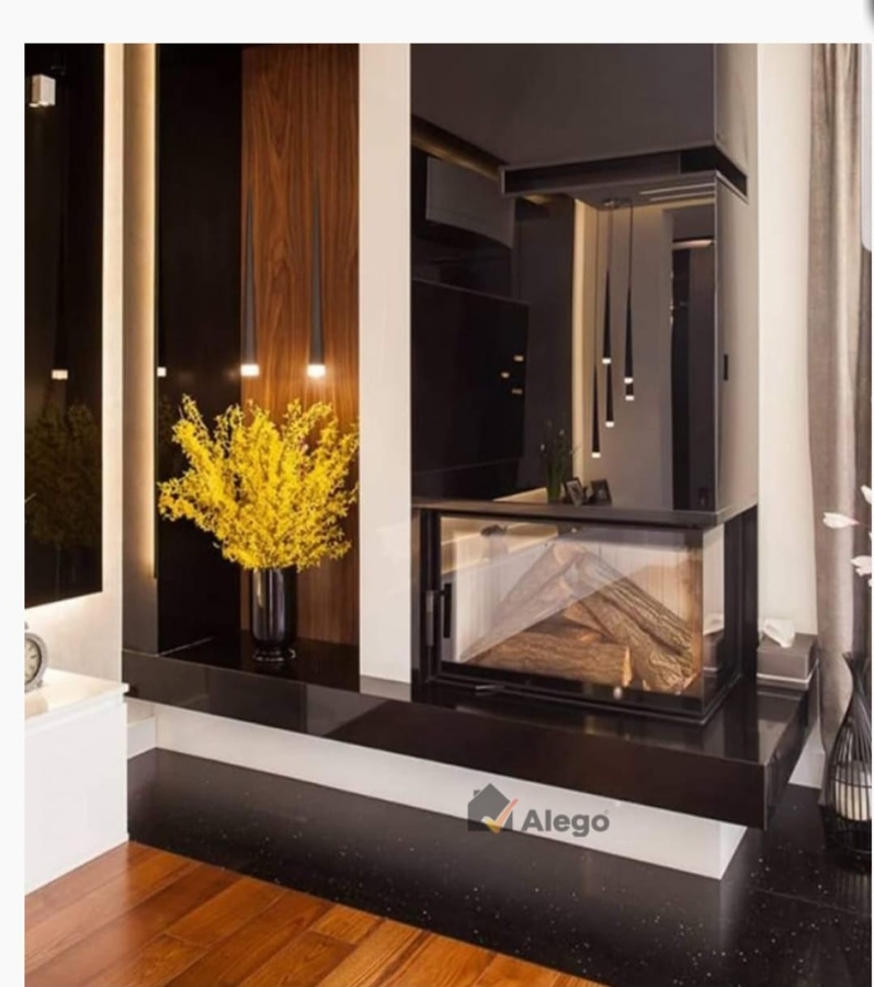 Semineu din fonta, pe colt, geam pe dreapta cu 2 laterale din sticla.