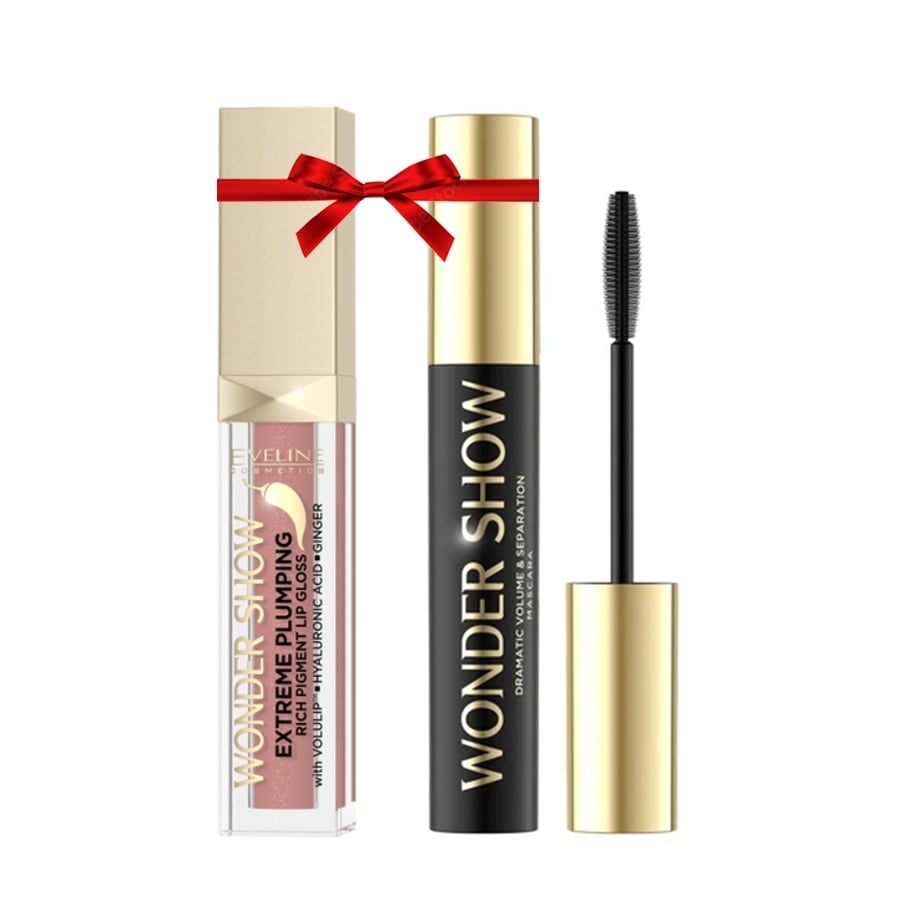 si Mascara volum si separare Setul Eveline Wonder Show combina doua produse esentiale de machiaj: un luciu de buze pentru volum si o mascara care ofera volum si separare clara a genelor, concepute sa transforme si sa intensifice aspectul buzelor si al ochilor.