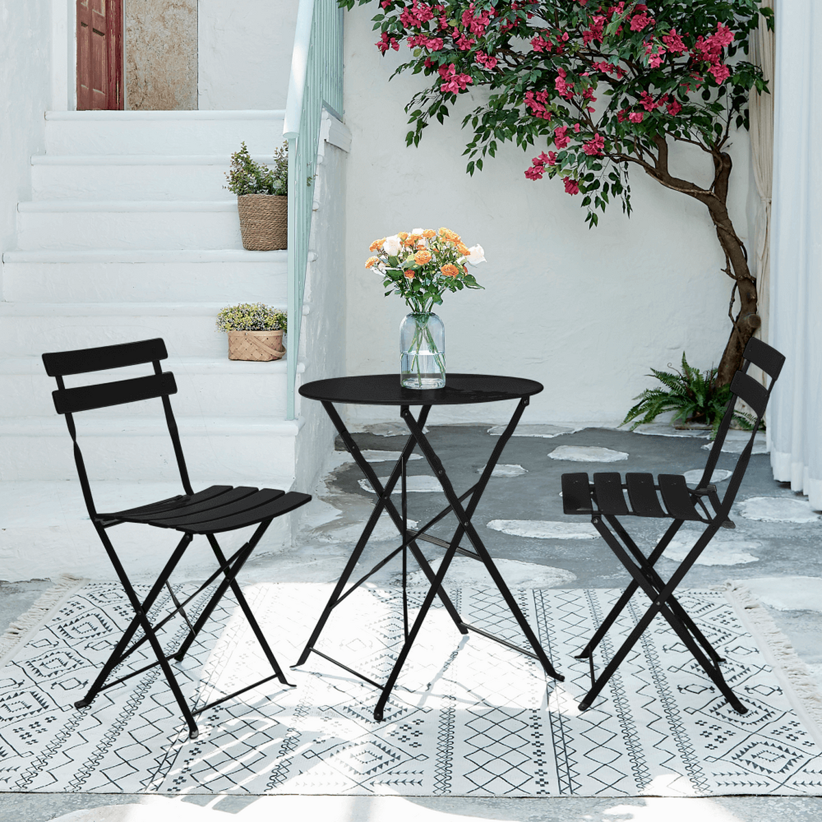 Set masa scaune gradina otel negru Obax 59.5x59.5x71 cm, 42x51x81 cm