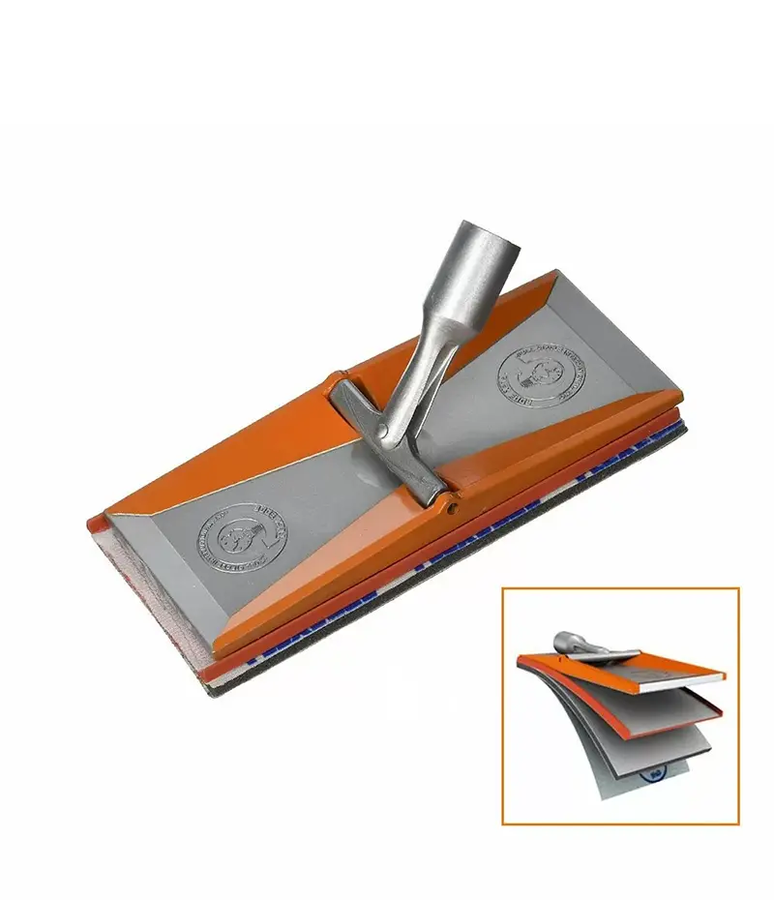 Bratul pentru colturi (coltar) Flex – un abraziv rezistent cu unghi unic de 20, folosit in repetate randuri pentru o finisare perfecta a colturilor.