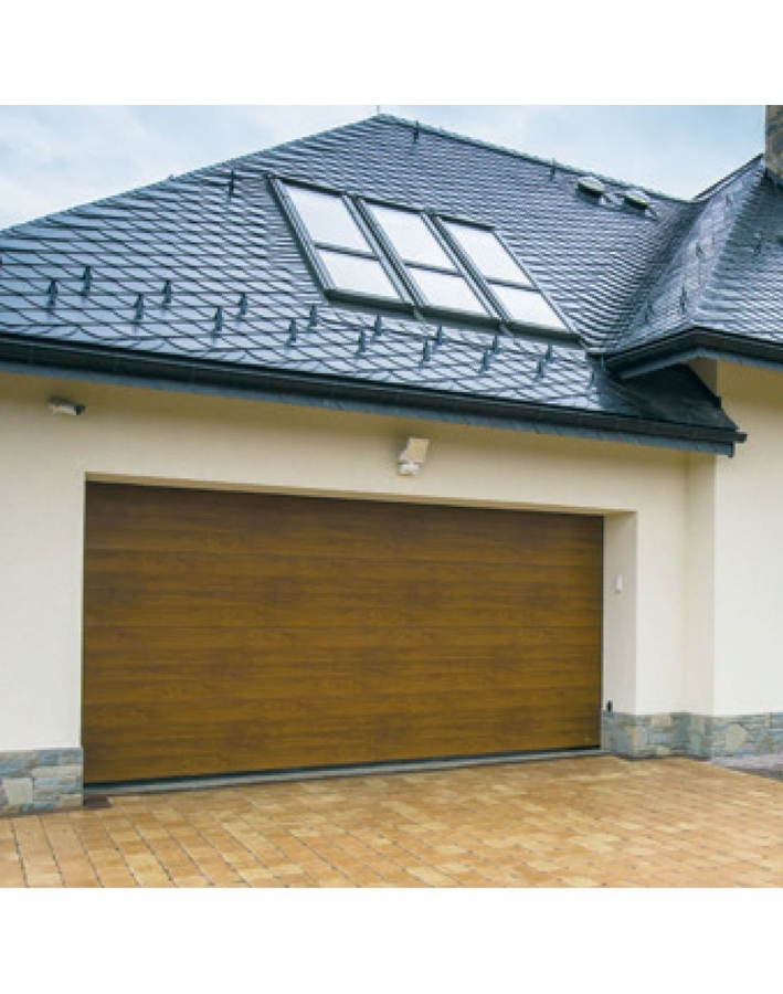 Usa de garaj automatizata Optimal 40 stejar auriu este o usa cu izolatia termica de tip sandwich, confectionata din tabla galvanizata si spuma poliuretanica.