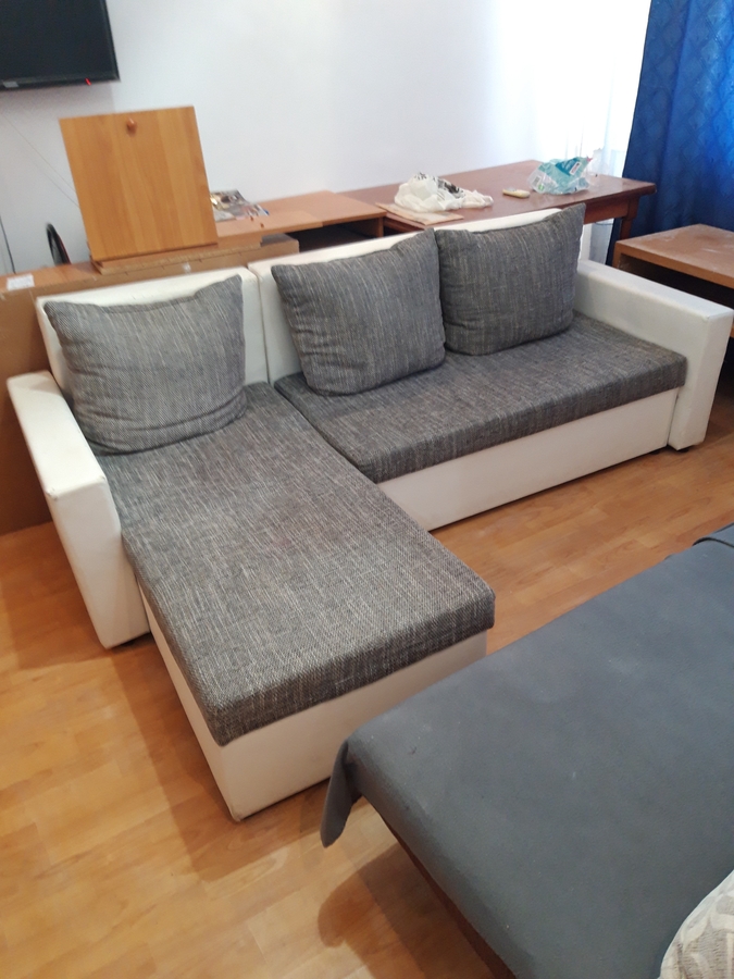 in stare foarte buna. Canapeaua este formata din 2 corpuri independente care se alatura si formeaza un ansamblu in forma literei L. Canapeaua este in stare foarte buna, cumparata de 1 an de zile, dar practic nefolosita.