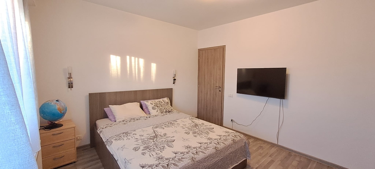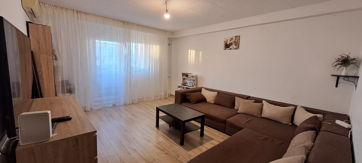 Imobilul este un bloc edificat in anul 1986, reabilitat, iar apartamentul se afla la etajul 8 din 8, terasa de deasupra fiind renovata, izolata termic si fonic. Apartamentul dispune de 61 mp impartiti in living, dormitor, bucatarie, baie, hol acces si balcon.