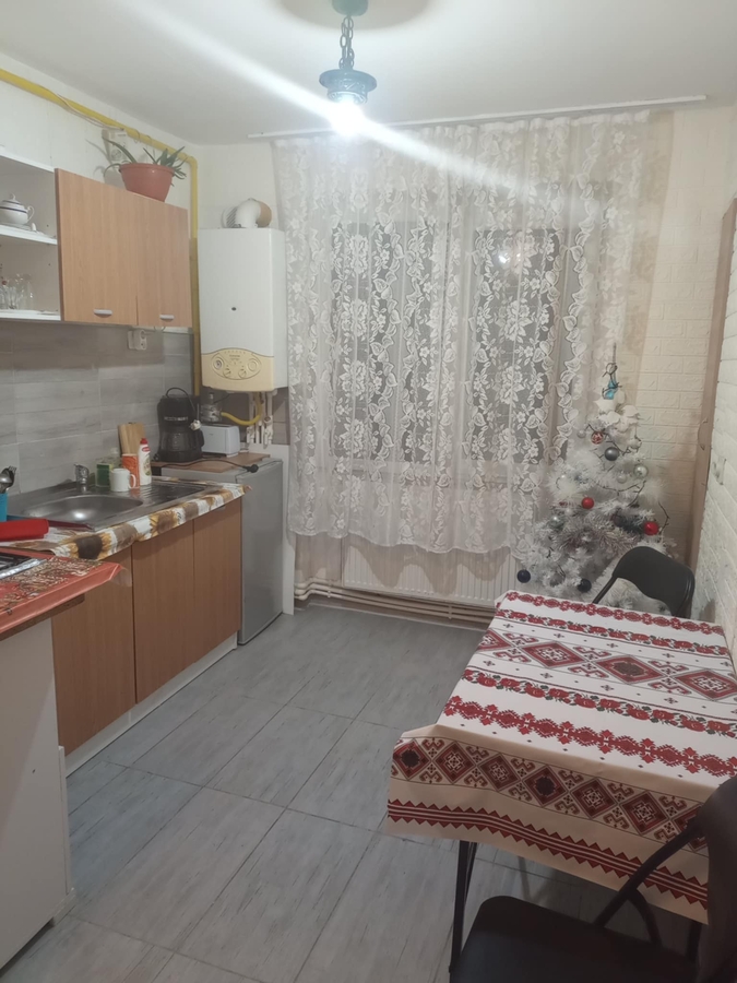 Apartament de vanzare cu doua camere, balcon, usa metalica cu centrala termica, izolatie termica, faiantat, cu gresie si parchet laminat, in apropiere de Profi, La doi pasi, B.R.D. si parc de copii si relaxare, aproape de statia de autobuz si taxi,