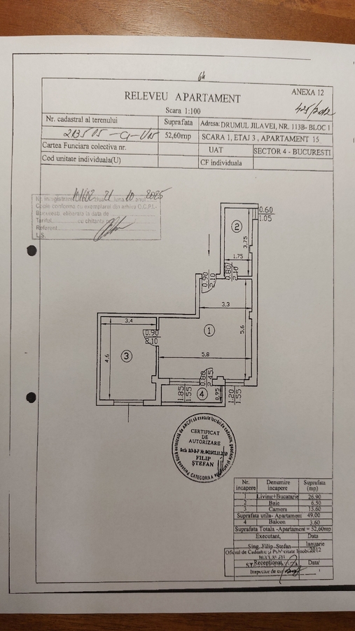 proprietar, vand apartament cu 2 camere, in sectorul 4, cartier Berceni, zona Parc Tudor Arghezi, situat pe str. Drumul Jilavei, nr. 113B, in Complexul rezidential Lucky Residence (vedeti mai exact pe Google Maps). Apartamentul este confort 1, semidecomandat, cu SU = 49 mp, 1 balcon de 3,6 mp, astfel avand o ST = 53 mp, situat la etajul 3/4, intr-un bloc dat in folosinta in anul 2012, este proaspat zugravit, are usa metalica, gresie si faianta la baie, termopane, 1 aer conditionat si centrala termica proprie; exista geam la baie; peretele despartitor dintre living si balcon s-a desfiintat, pentru a se mari livingul, dar puteti dvs. sa veniti cu un perete din geam termopan despartitor si cu usa de termopan si sa vi-l creati din nou, daca doriti. In apartament mai trebuie doar sa va puneti dumneavoastra dupa bunul plac, parchet in toata casa (pe care l-am scos fiindca se deteriorase), 2 usi de interior asortate cu parchetul si o cada sau cabina de dus, iarasi la alegere; nu le-am pus eu, tocmai ca sa vi le puneti dvs. pe gustul dvs. In cazul in care se doreste, puteti schimba si gresia si faianta la baie, iarasi dupa propriul gust. In pret aveti inclus si un loc de parcare in fata blocului. Complexul este imprejmuit cu gard de jur imprejur si are la intrare porti metalice actionate cu telecomanda. Pretul de vanzare este usor negociabil. La pretul de vanzare NU se adauga TVA, acesta fiind pretul total si final. Va pot trimite FILM cu prezentarea apartamentului, daca doriti.