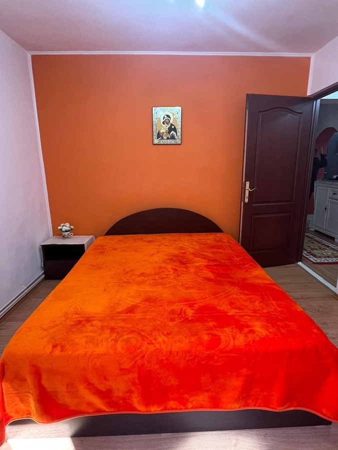 - situat la etajul 1, imbunatatit cu usa metalica, parchet, geamuri termopan glisante, centrala proprie pe gaze, repartitoare apa, apometre; faianta si gresie in baie si bucatarie; mobila pe comanda in tot apartamentul, aranjat modern, elegant si foarte curat.