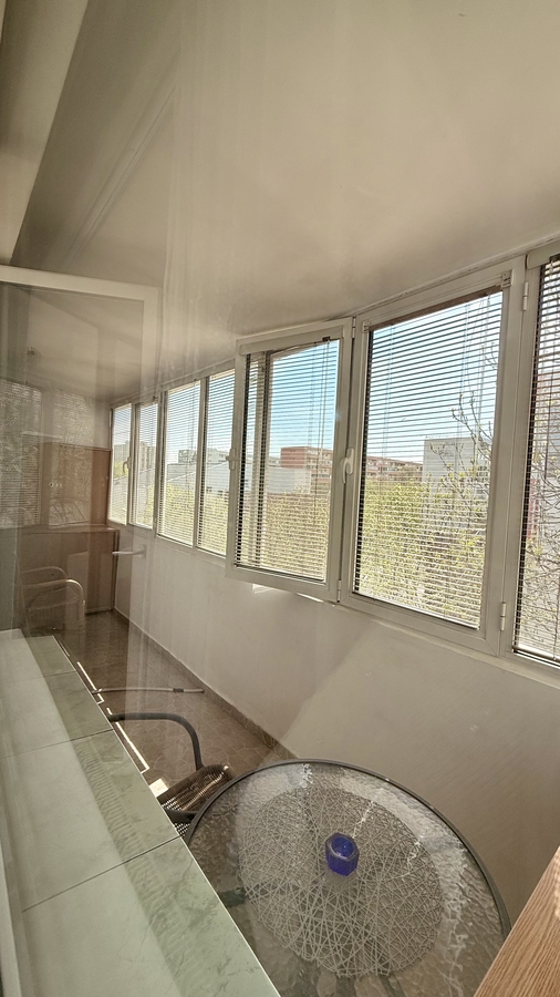 • balcon mare, inchis, cu vedere deschisa catre spatiu verde