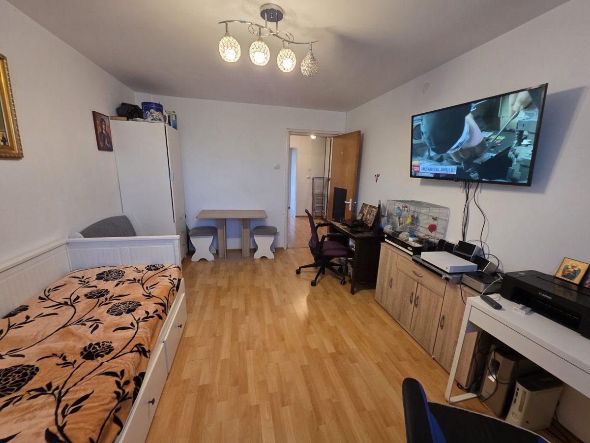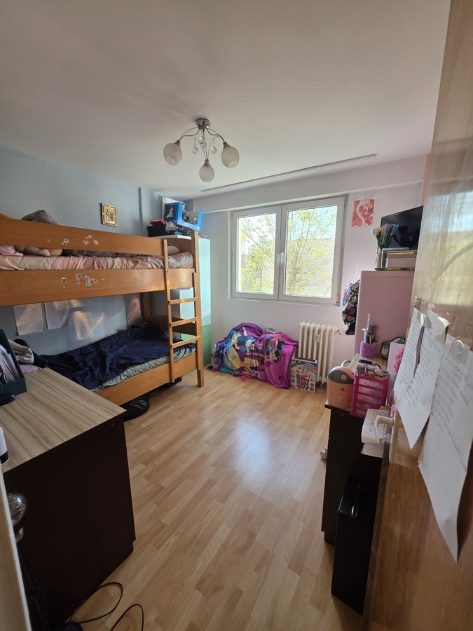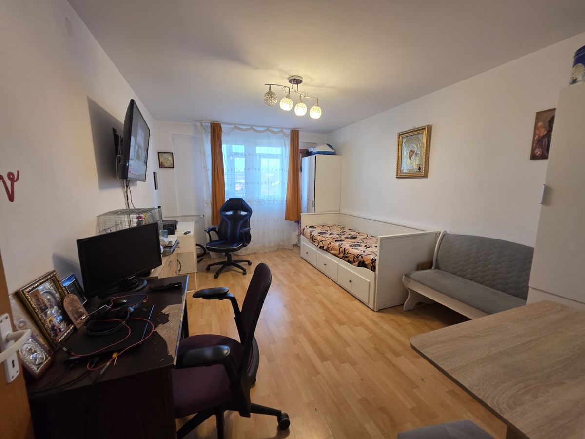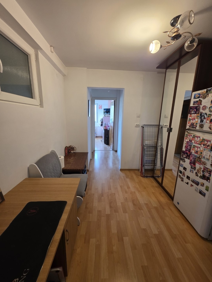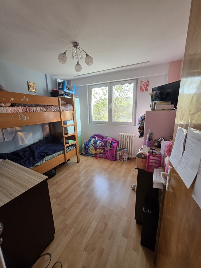 Apartamentul este decomandat, la etajul 3 din 10, cu o suprafata de 45 mp balcon, are gresie, faianta, parchet, termopane, usa metalica, partial mobilat.
