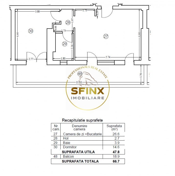 Apartamentul este amplasat la etajul 3 al unui imobil nou (constructie 2024). Spatiul locuibil (48mp) se compune din living cu bucatarie deschisa, dormitor, baie cu cada, hol, la care se adauga terasa generoasa (19mp).