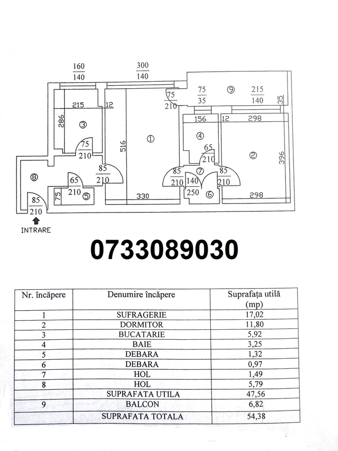 - Suprafata 54 mp
