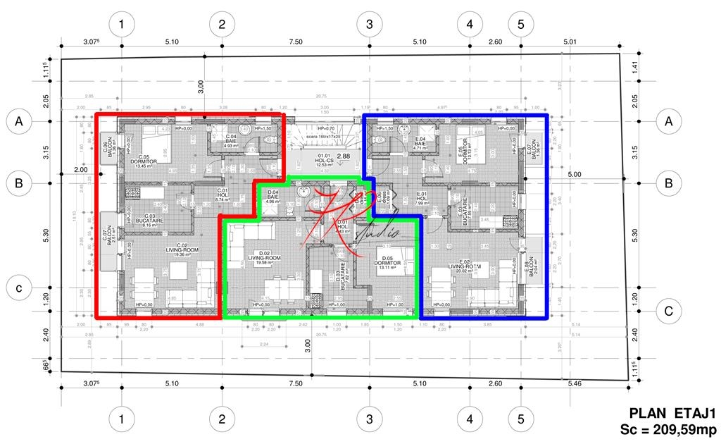 Cladirea este construita cu cele mai inalte standarde de izolatie termica si rezistenta, cadre de beton armat, pereti interiori si exteriori cu caramida poroterm, acoperis din tabla lindab.