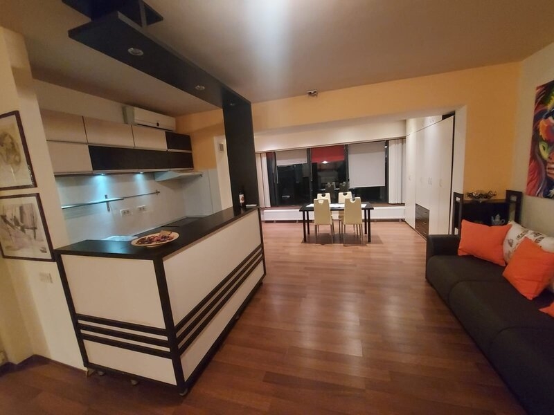 apartament situat in ansamblul rezidential Orhideea Gardens apartament cu doua camere cu o suprafata de 107 mp cu o terasa generoasa proprie de 23 mp. Este situat la etajul 11/12, vedere panoramica apartamentul este mobilat utilat complet masina de spalat vase, cuptor, plita, cuptor microunde, 2xAC. Centrala imobil paza 24/24 supraveghere video rulouri exterioare actionate electric, Complexul benficiaza de sala fitness, SPA, sala de spining, gradinita. Acces facil catre toate zonele Bucurestiului inclusiv la metrou care este la 5 minute de mers pe jos. In prezent apartamentul este inchiriat cu 800 euro luna. Optional se poate cumpara si un loc de parcare subteran la pretul de 19000 euro.