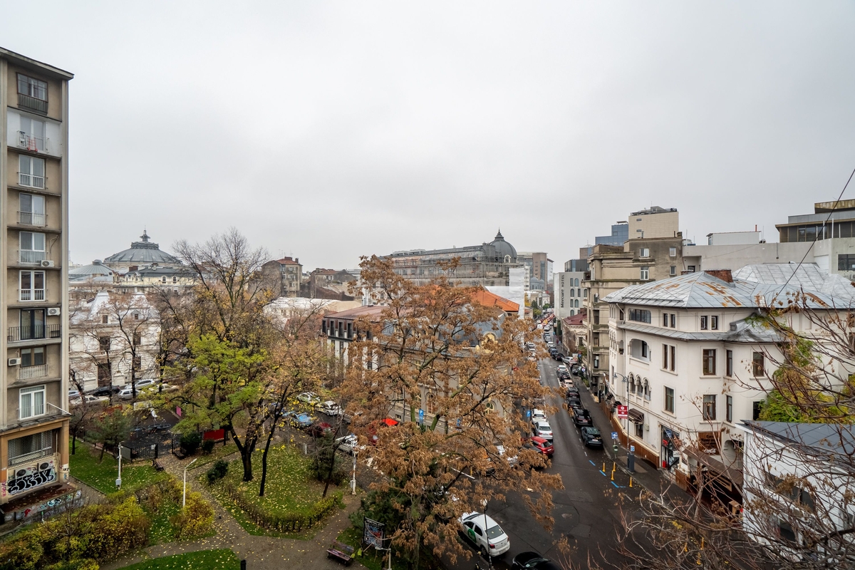 A locui aici inseamna mai mult decat a avea o adresa ultracentrala. Este un stil de viata urban, sofisticat si conectat la pulsul orasului. Diminetile pot incepe cu o cafea pe balcon, privind cupola Ateneului, iar serile pot fi petrecute la cativa pasi de teatre, restaurante si cafenele de pe Calea Victoriei. Atmosfera vibranta a zonei se imbina perfect cu linistea oferita de apartamentul orientat spre spatele cladirii.