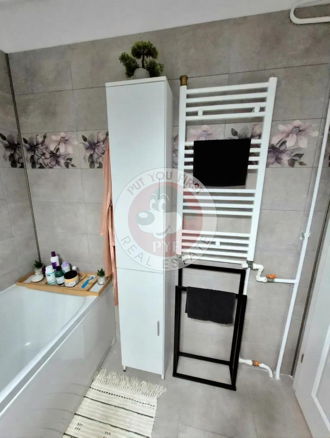 Podele: parchet, gresie | Pereti: faianta, lavabil | Ferestre: pvc