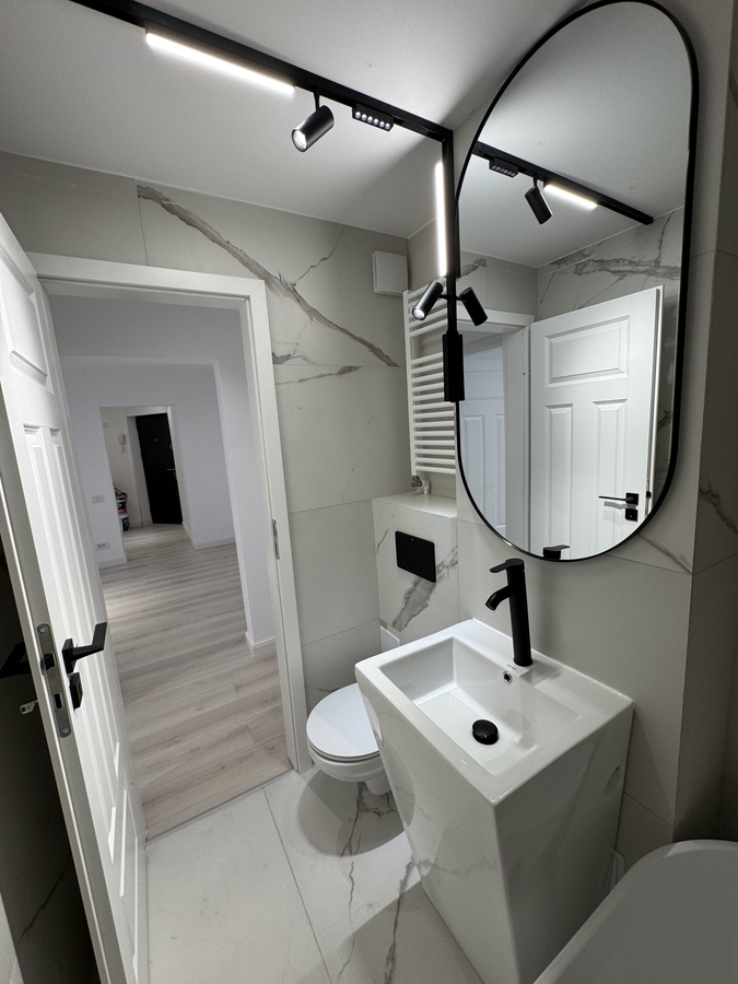 Apartamentul este complet renovat si amenajat modern, cu finisaje de lux si dotari premium: