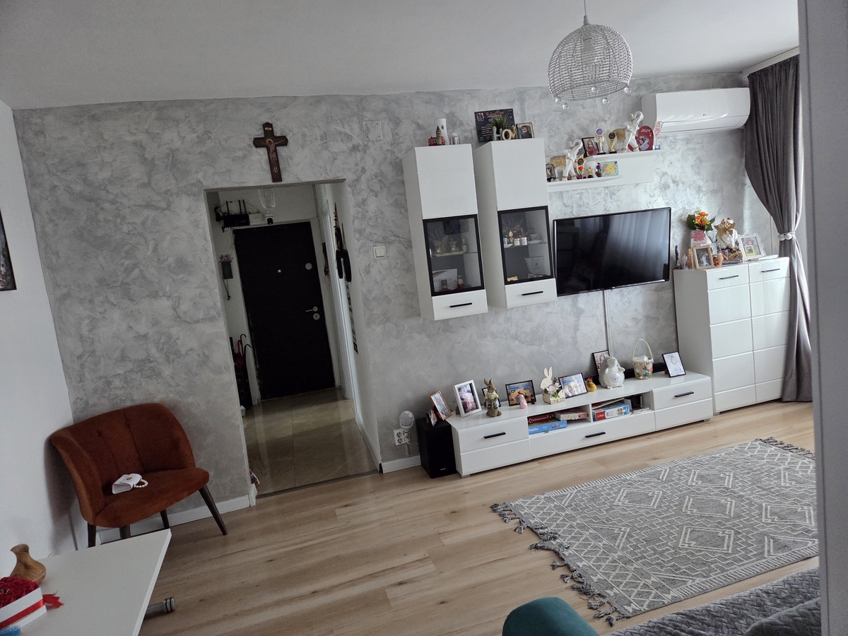 Apartament 2 camere, bloc fara risc seismic. Se vinde mobilat/utilat (fara electrocasnice mici) cu electrocasnice in garantie. Frigider side by side in garantie Samsung, boiler in garantie etc.