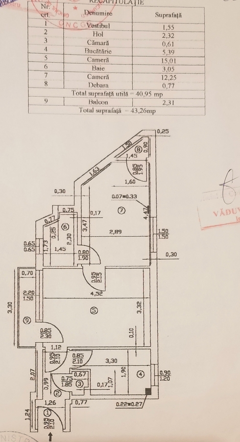 Apartamentul se afla la etajul 3 din 6, intr-un imobil din anul 1964, suprafata totala cu tot cu balcon este de 40.95 mp utili, 43.26 mp suprafata totala, fiind semidecomandat (living cu balcon, bucatarie inchisa, dormitor, baie, vestibul). Acesta are la sufragerie geam termopan si usa de intrare metalica ABUS cu instalatie de inchidere care aduce un plus de securitate. In rest, necesita amenajare. Apartamentul este complet debarasat, pregatit pentru vanzare.