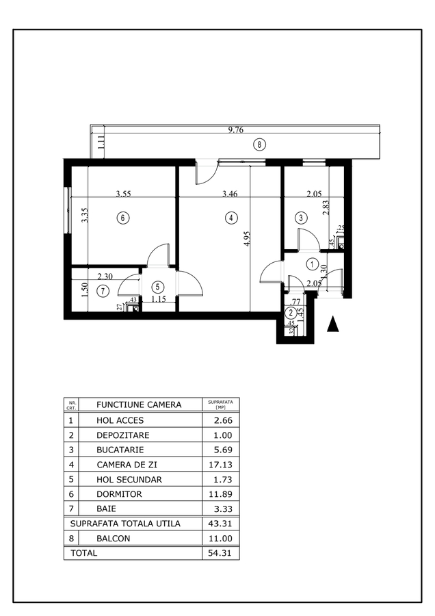 Apartamentul beneficiaza de: 2 camere, 1 balcon de 10mp.