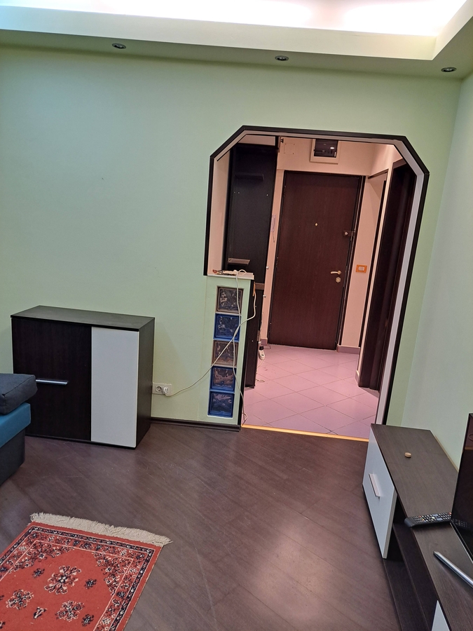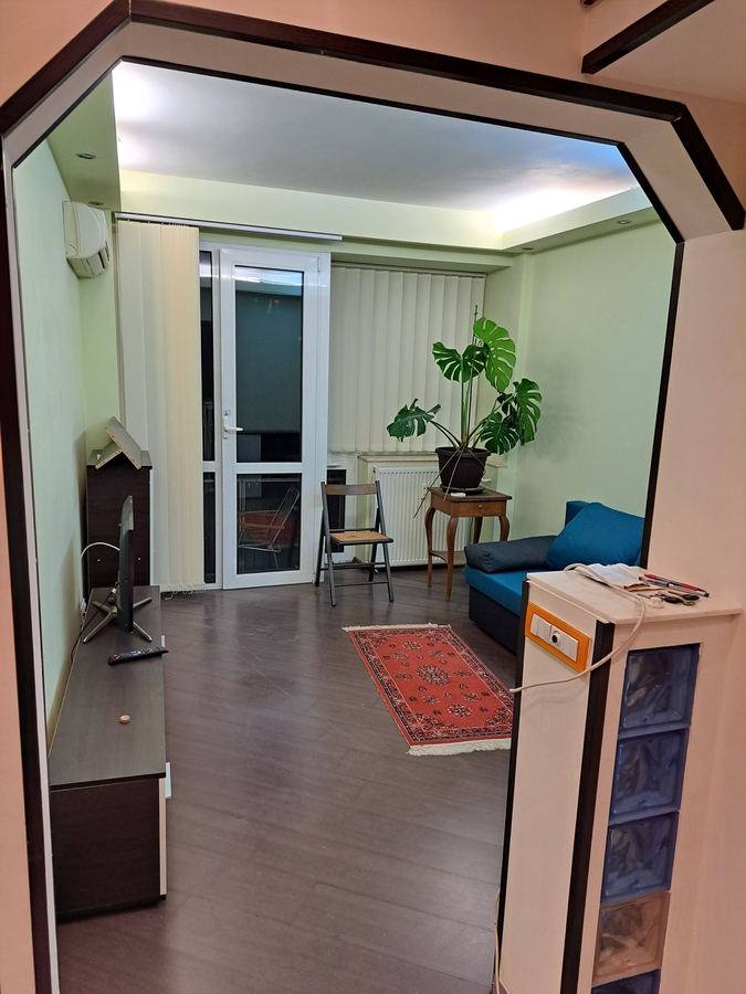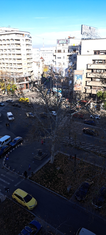 Ap. 2 camere, bloc Eva- Magheru, decomandat, et. 6 din 9, pe colt, vedere stradala. Renovat modern, mobilat.