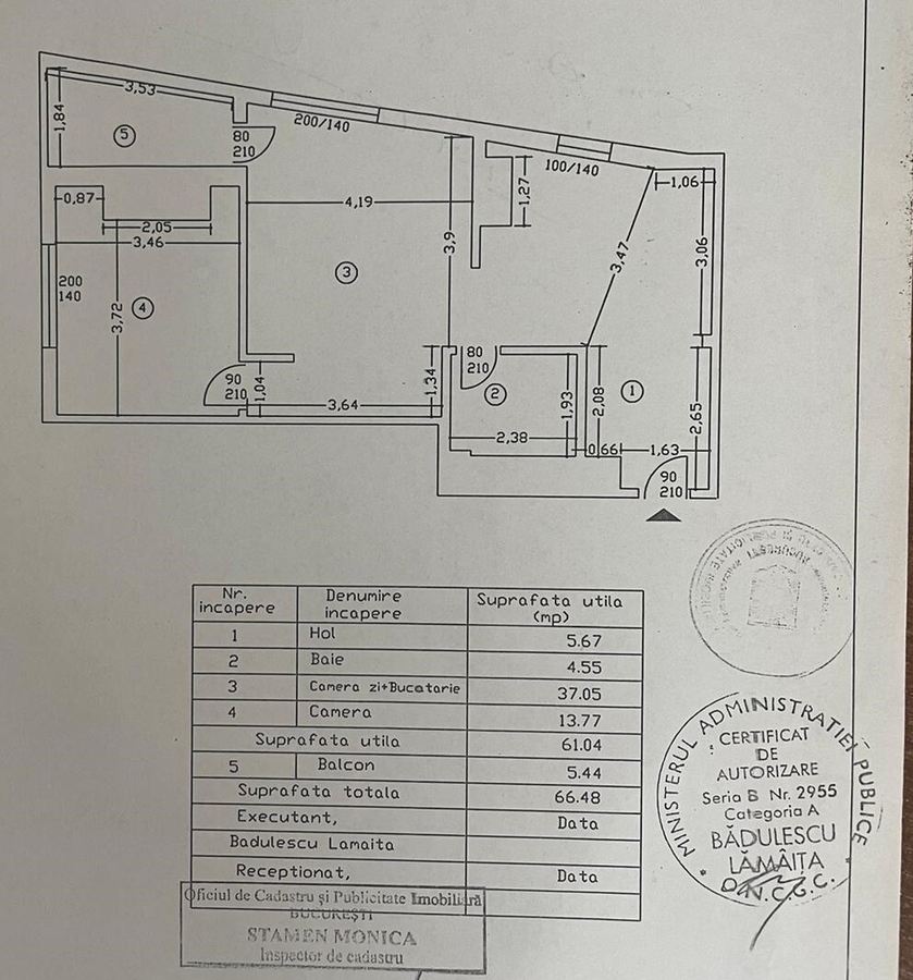 Apartamentul are suprafata generoasa de 66,48 mp , ce include si un balcon inchis cu suprafata de 5.44 mp