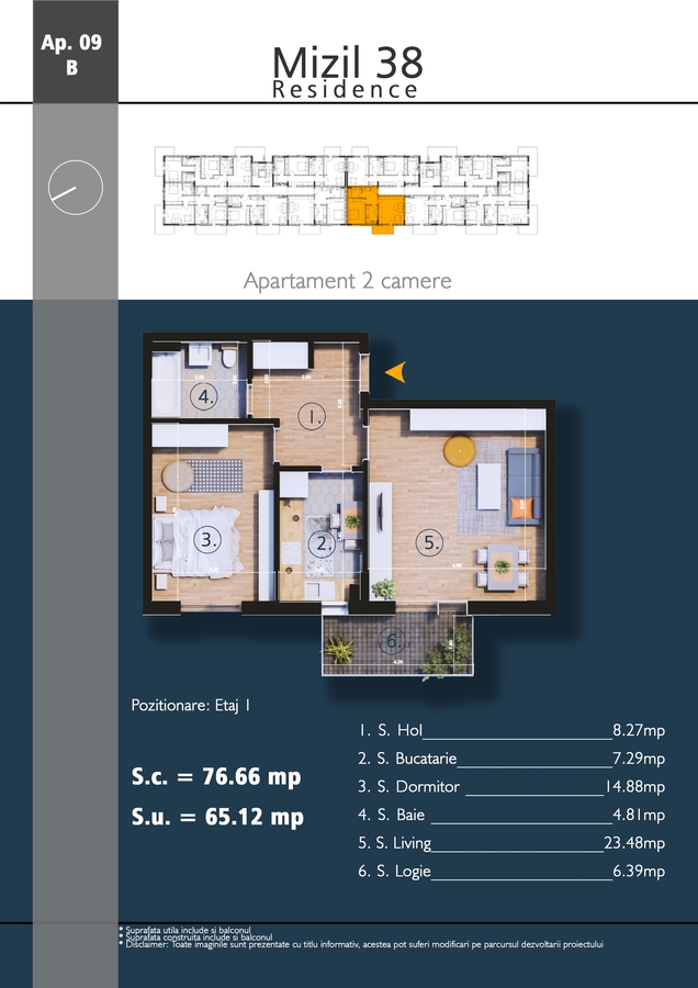 Imobilul face parte dintr-un bloc nou cu regim de inaltime D+ P+4E.