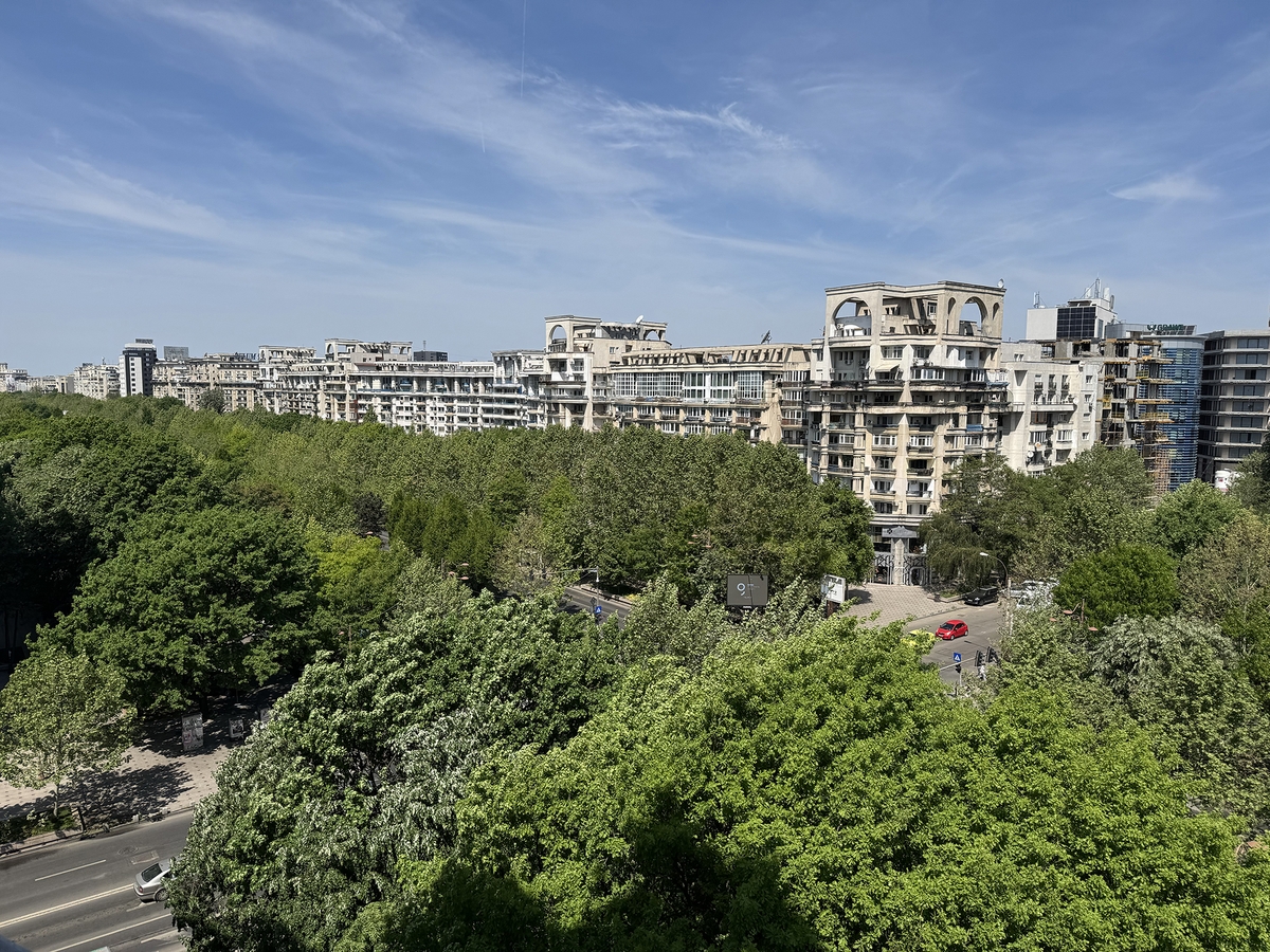 2 camere cu vedere la Bd. Unirii, 72 mp, et. 6/9. Luminos, compartimentat excelent, decomandat: living, dining, dormitor, baie, bucatarie si 2 balcoane, AC, utilat, mobilat, loc parcare - liber