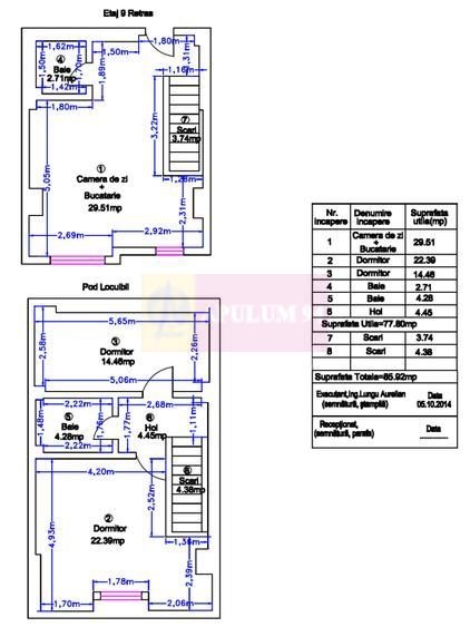 Compania imobiliara Apulum94 va propune un apartament deosebit (unicat ) de 3 camere tip duplex situat la etajele 9 si 10 (deasupra pod ) intr-un bloc dat in folosinta in anul 2014, in zona Sebastian Parc - Kaufland - Carrefour Vulcan .Blocul este anvelopat ,are pod si este stradal ,dar un pic retras de la strada.Apartamentul are costuri mici de intretinere- centrala termica-izolare termica-pozitie de mijloc in cadrul blocului - orientare sud est-sud- construit cu materiale de calitate .Suprafata utila a apartamentului este de 78 mp, suprafata totala de 86 mp si separat se poate vinde si cu o boxa de 8 mp. Apartamentul se vinde mobilat precum in poze , are doua aparate Daikin de aer conditionat de 12000 btu, usi Pinum la interior , usa metalica , obiectele sanitare sunt Roca si Grohe iar cele doua bai sunt in variantgeamurilea cada si cabina de dus . Bucataria este echipata cu plita cu inductie Electrolux, hota Teka, masina de spalat vase Aristone. De asemenea apartamentul are rulouri exterioare la toate geamurile.