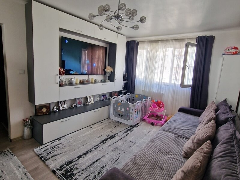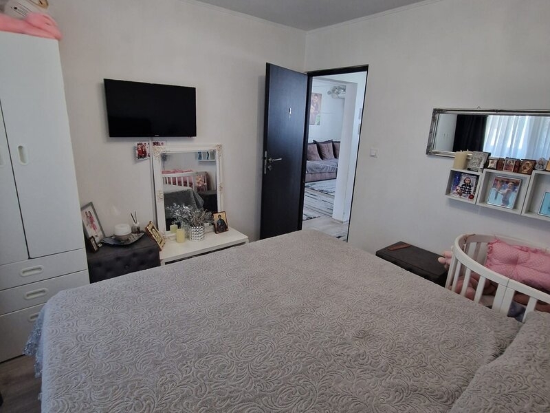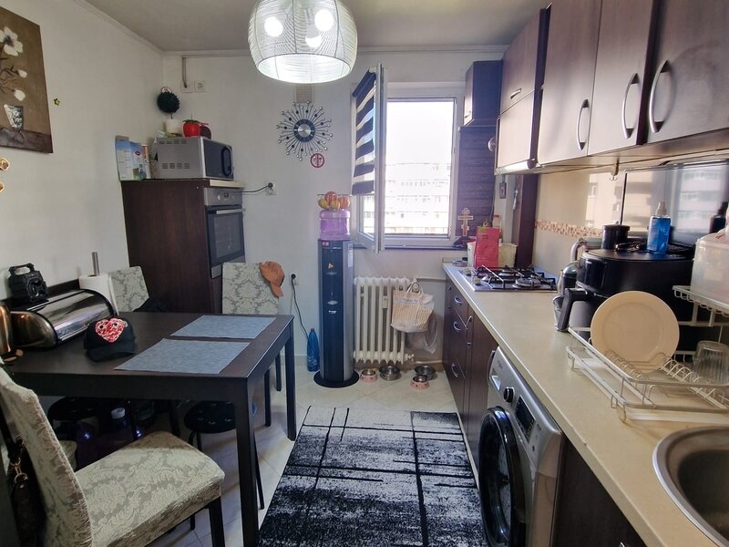 Apartamentul este semidecomandat are o bucatarie mare, renovat complet, are gresie, faianta, parchet, termopane, instalatii electrice si sanitare schimbate, partial mobilat si utilat.